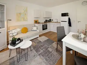 Willkommen im neu renovierten und geschmackvoll eingerichteten 2-Zimmer-Appartement „Ferienglück“ im Ostseebad Nienhagen. Auf 35 m² bietet es Platz für bis zu 2 Personen und liegt nur 500 Meter vom Strand entfernt. Der moderne Wohnbereich verfügt über eine offene Küche mit Cerankochfeld, Backofen, Kühlschrank, Wasserkocher, Toaster, Kaffeemaschine und Mikrowelle. Ein Flachbild-TV ist ebenfalls vorhanden. Eine kleine Terrasse mit Möbeln und Grill lädt zum Entspannen ein. Das Schlafzimmer ist gemütlich mit einem Boxspringbett (140x200) eingerichtet. Es handelt sich um zwei getrennte Matratzen mit Topper. Das moderne Badezimmer bietet eine Dusche, WC, Waschbecken und Handtuchheizkörper. Kostenfreies WLAN und ein Stellplatz direkt vor dem Appartement runden das Angebot ab. Bitte beachten Sie, dass das Rauchen im Appartement nicht gestattet ist. Wir freuen uns, Sie im „Ferienglück“ begrüßen zu dürfen und wünschen Ihnen einen wunderbaren Aufenthalt! Wir bitten Handtücher und Bettwäsche selbst mitzubringen. Unsere Unterkunft ist für Monteure nicht geeignet.Sonstiges