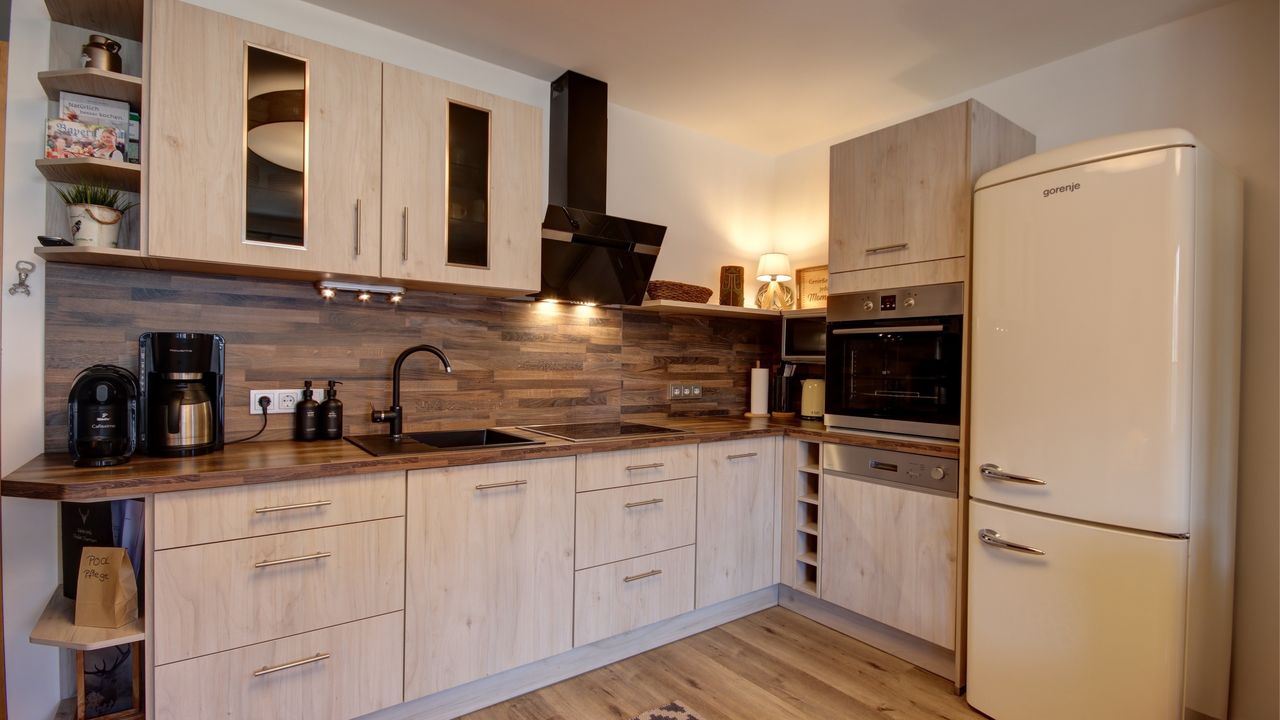 Der eingezäunte Garten bietet Ihnen Privatsphäre und Sicherheit, während Sie die frische Luft und die malerische Umgebung genießen. Auf der Terrasse können Sie die Sonne genießen oder ein gemütliches Abendessen im Freien mit dem Grill zubereiten. Die Lounge-Möbel und Liegen laden zum Entspannen ein. Die Küche des Chalets ist großzügig ausgestattet und bietet alles, was Sie für die Zubereitung von Mahlzeiten benötigen. Der Holzofen im Wohnbereich sorgt für eine gemütliche Atmosphäre und lädt zum Entspannen ein.