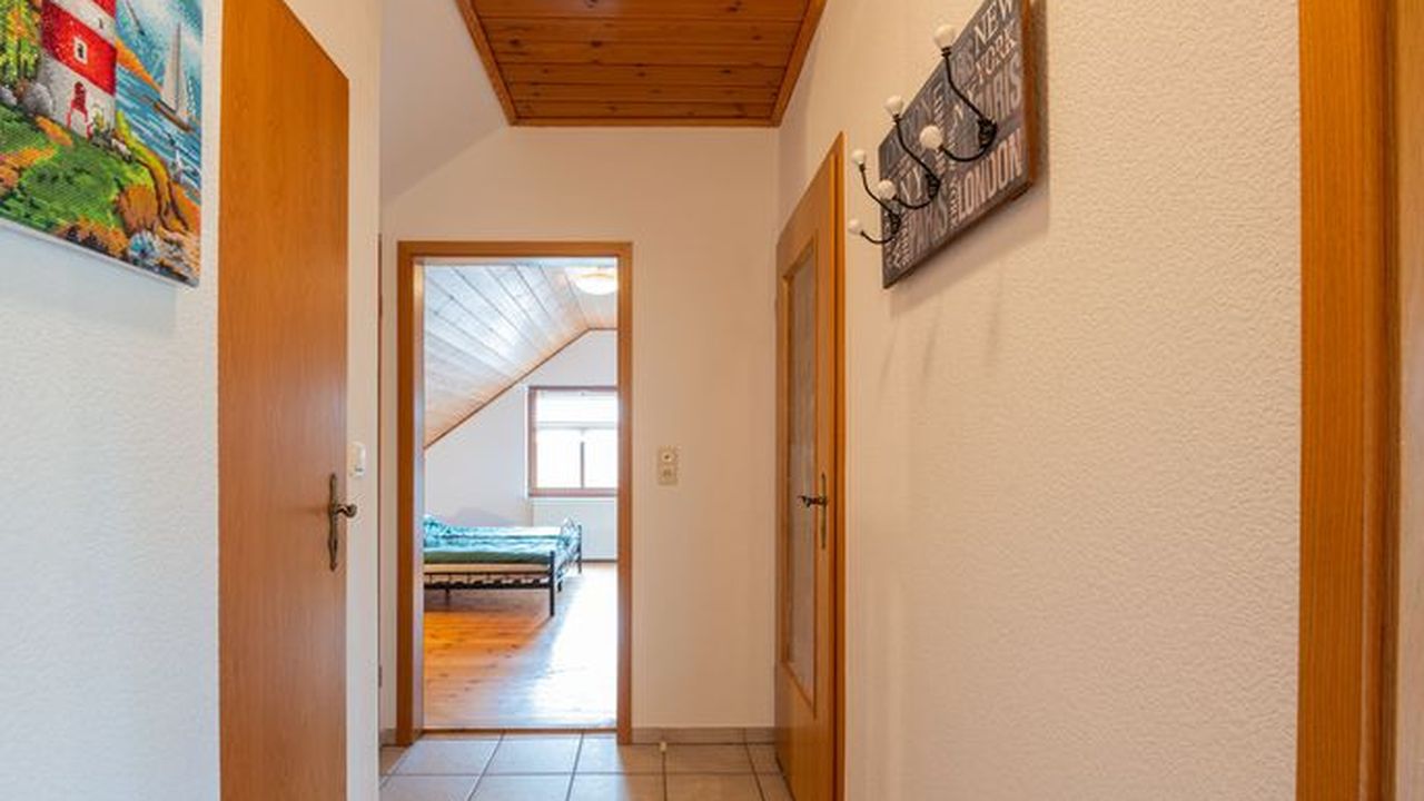 In der ersten Etage erwartet euch eine 70qm große Ferienwohnung aufgeteilt in Wohnzimmer, Schlafzimmer, Küche und Duschbad mit separatem WC. Eine kleine Sitzmöglichkeit vor der Unterkunft ist vorhanden. In der Ferienwohnung ist das Rauchen untersagt. Haustiere sind nicht willkommen.