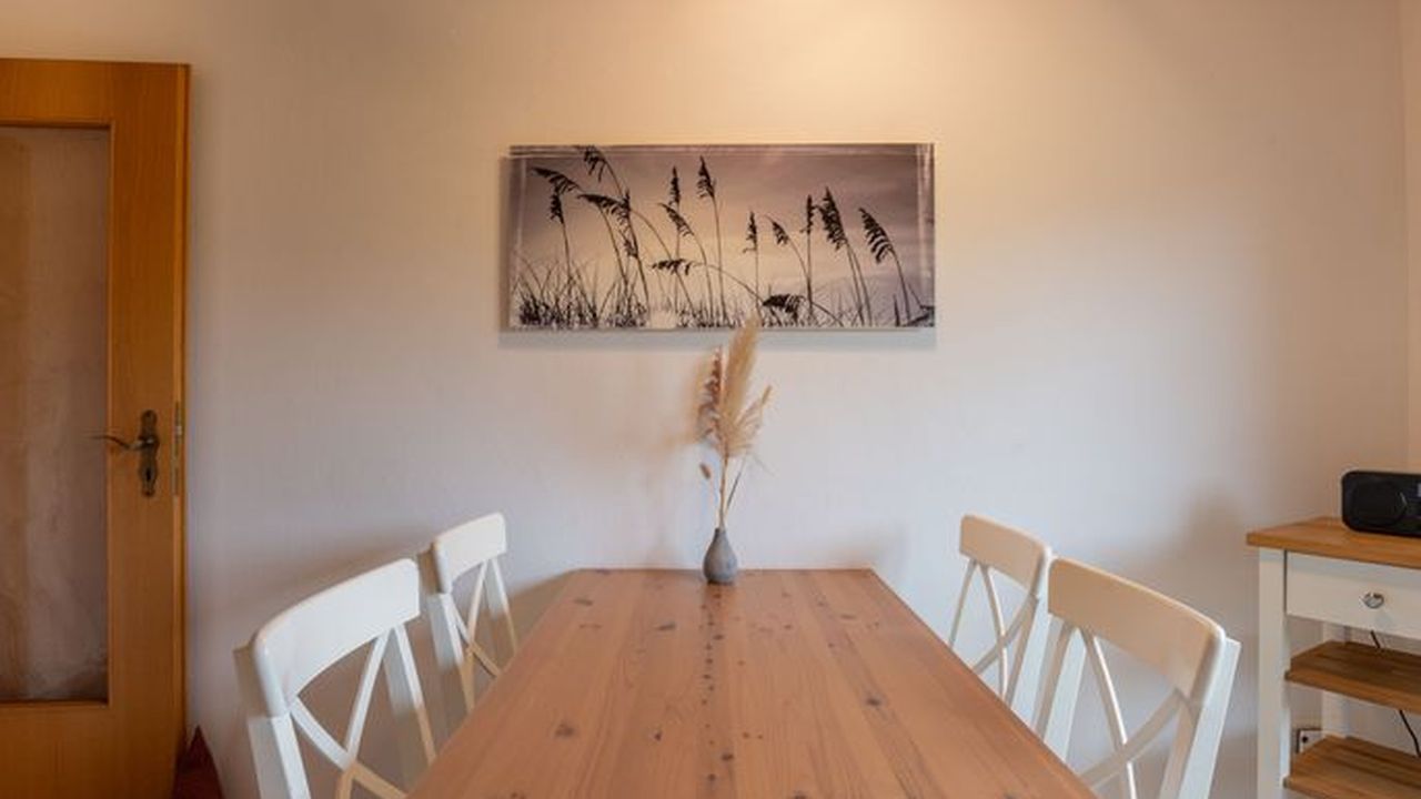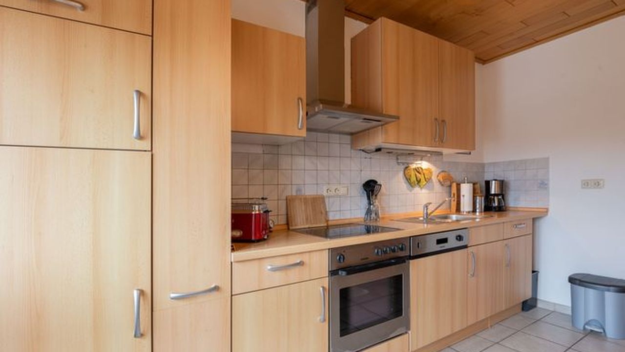 Die voll ausgestattete Küche lädt zum gemütlichen Kochen und Verweilen ein. Vier Personen finden am Küchentisch Platz. Einen Kinderstuhl stellen wir auf Nachfrage gerne dazu.