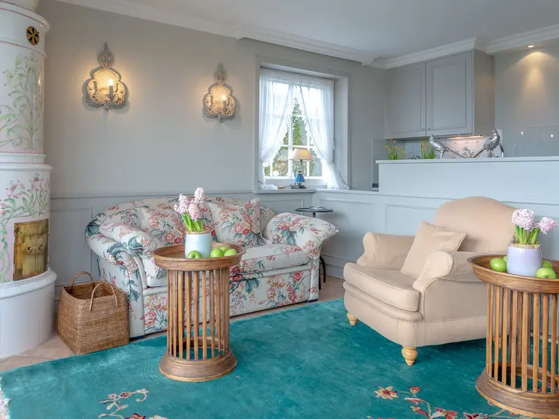 Idyllische Lage, exklusive Ausstattung und atemberaubende Panoramablick – alles das bietet Ihnen unsere Wohnung „Sönshörn 8 rechts“. Diese liebevoll eingerichtete Wohnung ist das ideale Refugium für bis zu zwei Personen. Bequeme, mit englischem Leinen bezogenen Polstermöbel, ein Jugendstilofen von Mylin, ein grüner Teppich mit stilvollen Blumenmotiven aus der Hof-Galerie im Rathaus Westerland und eine Küchenzeile mit Wandbildfliesen der Firma Mylin gehören zu dieser schönen Einrichtung. Das Schlafzimmer mit TV, ausgestattet mit französischen Polsterbetten und goldenen Lampen aus dem Hause Newig, sowie das Marmorbad mit Waschtisch des Designers Philippe Starcks gehören genauso zu dieser Wohnung wie eine Schlafcouch für ein Kind oder einen vorübergehend bleibenden Gast, ein Bose-Musiksystem und WLAN. Eine Sonnenterrasse mit Gartenmöbeln von Garpa lädt auf dem naturnahen Heidegrundstück mit direktem Blick auf das Wattenmeer zum Entspannen ein.