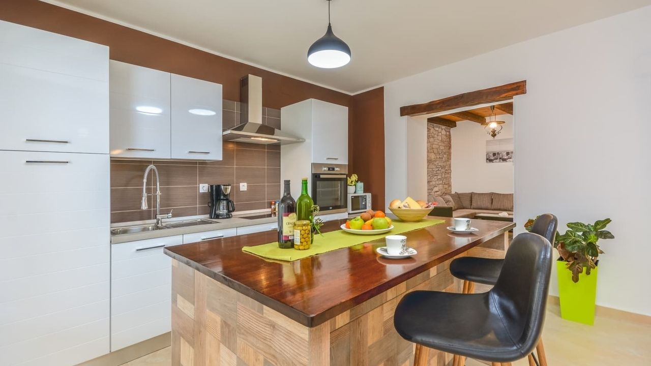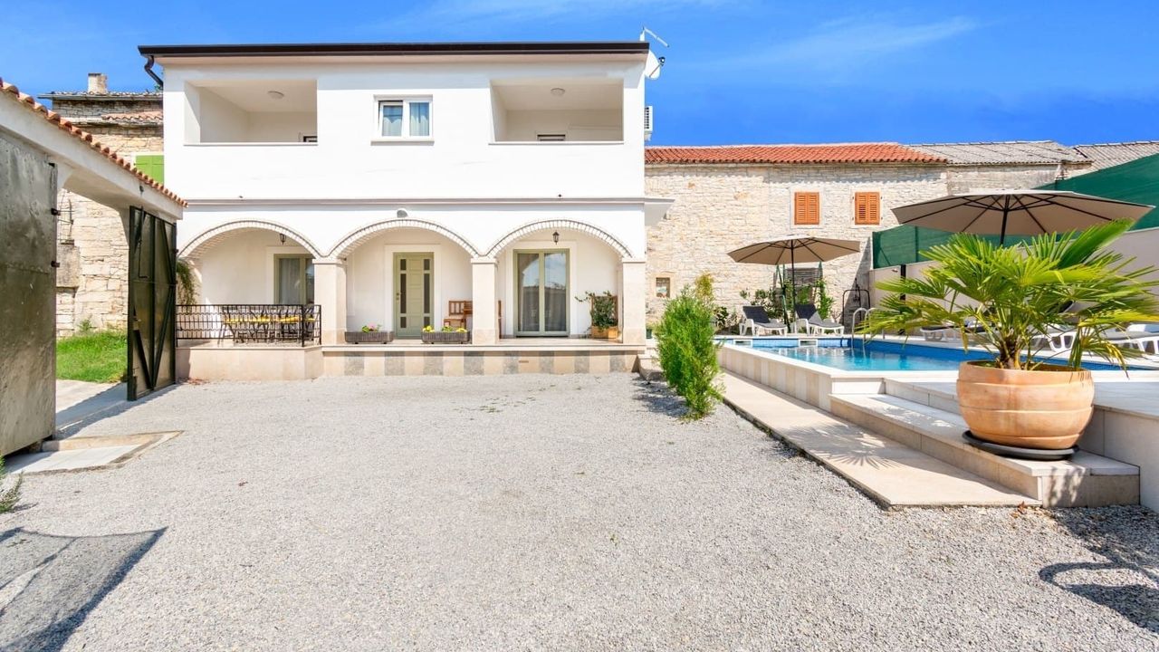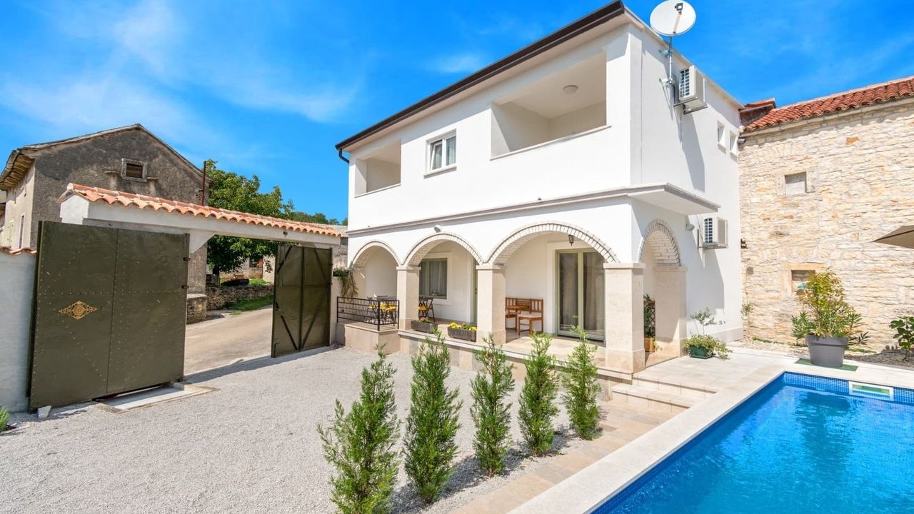 Im Zentrum des istrischen Dorfes mit frischer Landluft und ohne Verkehr oder Menschenmassen. Sie haben einen Innenhof, Terrasse, 2 Balkone.Willkommen in der Villa Martin, einem wunderschön renovierten istrischen Steinhaus, das die perfekte Kombination aus traditionellem Charme und modernem Komfort bietet. Mit 175 m² Wohnfläche und einem privaten 26 m² großen Swimmingpool bietet dieses ruhige Refugium Platz für bis zu 8 Gäste, ideal für Familien oder Gruppen, die einen erholsamen Urlaub auf dem Land suchen.