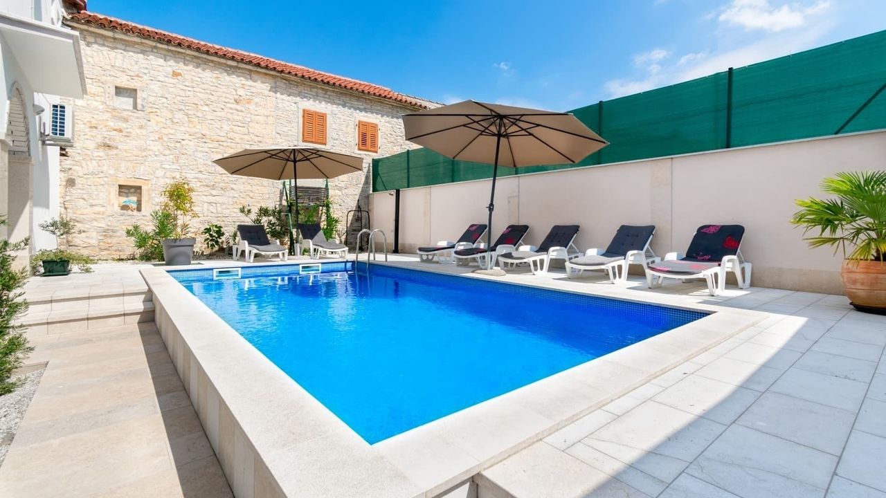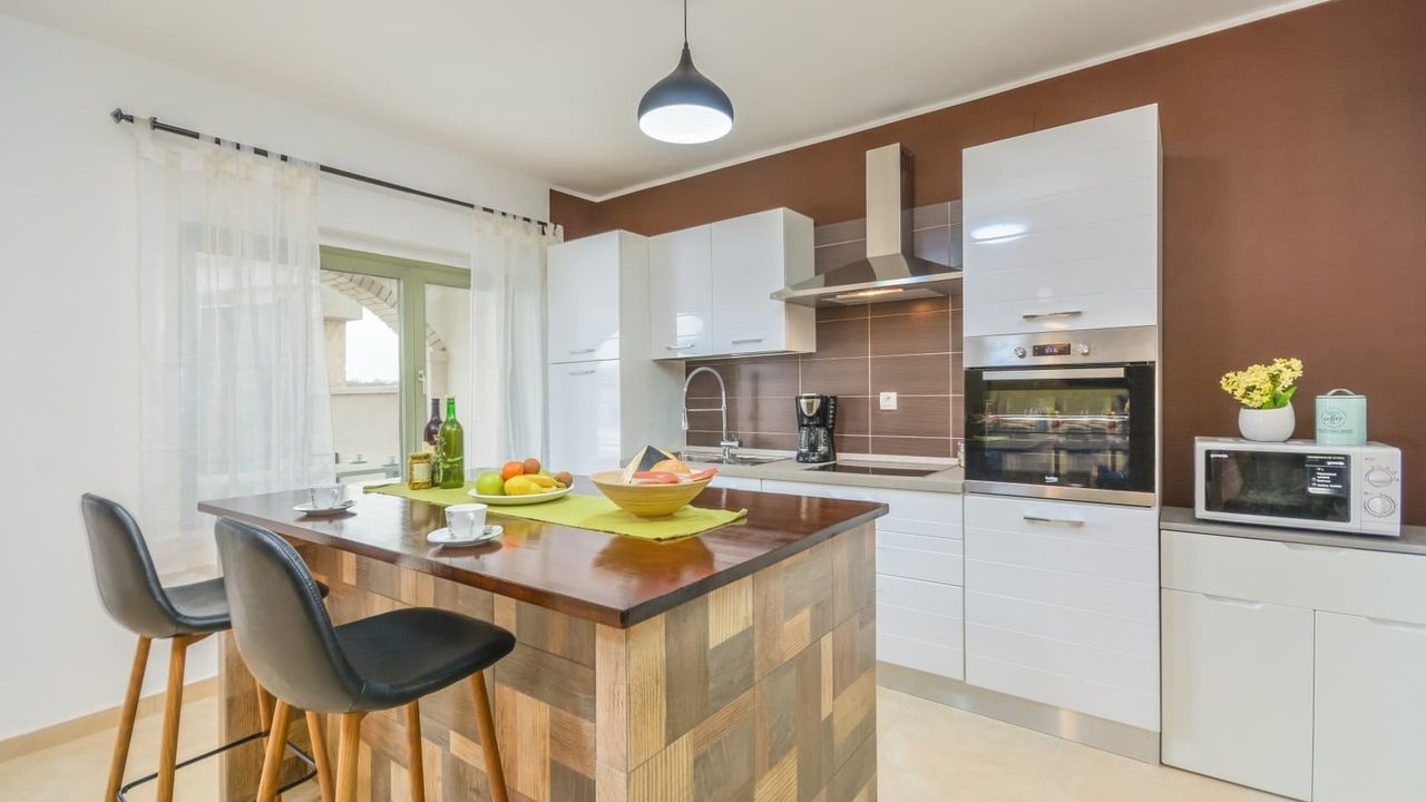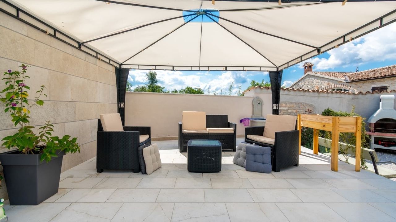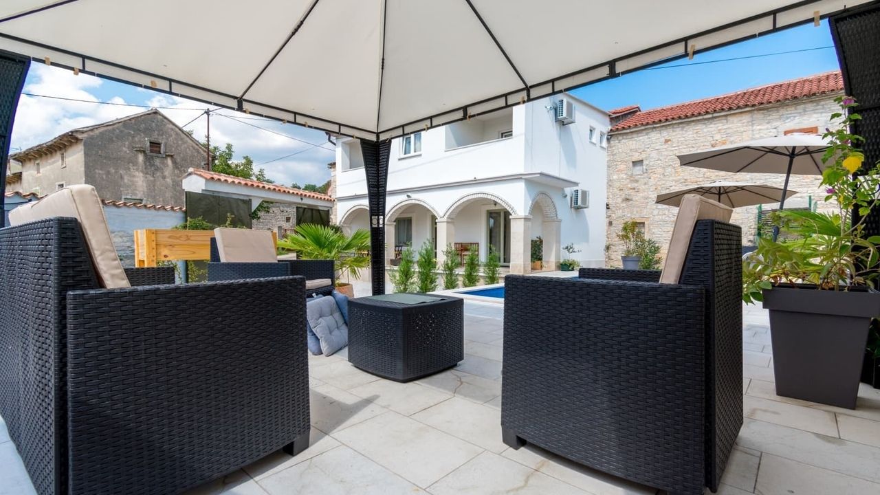 Im Zentrum des istrischen Dorfes mit frischer Landluft und ohne Verkehr oder Menschenmassen. Sie haben einen Innenhof, Terrasse, 2 Balkone.Willkommen in der Villa Martin, einem wunderschön renovierten istrischen Steinhaus, das die perfekte Kombination aus traditionellem Charme und modernem Komfort bietet. Mit 175 m² Wohnfläche und einem privaten 26 m² großen Swimmingpool bietet dieses ruhige Refugium Platz für bis zu 8 Gäste, ideal für Familien oder Gruppen, die einen erholsamen Urlaub auf dem Land suchen.