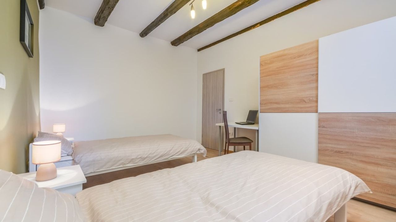 Schlafzimmer 2 – Zwei Einzelbetten und Ventilator