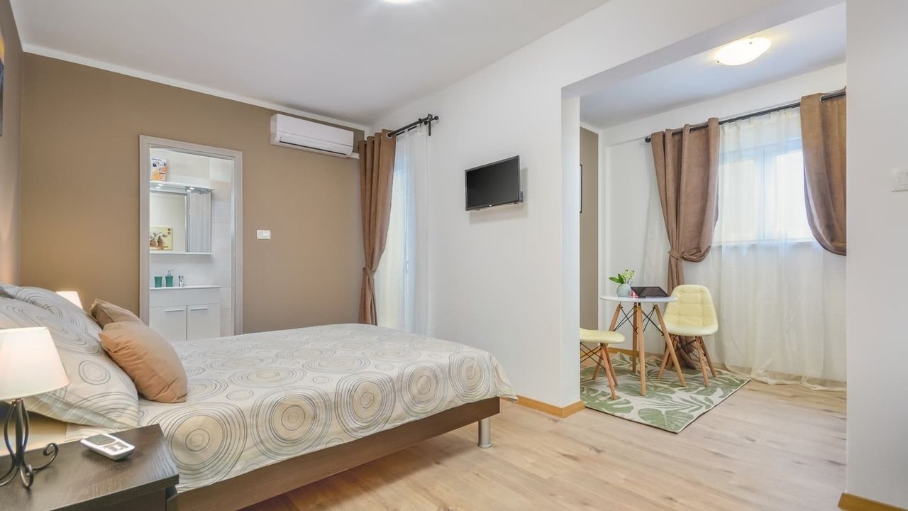 Ursprünglich 1961 erbaut, zeigt die Villa noch immer authentisches istrisches Mauerwerk, ergänzt durch durchdachte Erweiterungen und eine umfassende Renovierung im Jahr 2017. Im ruhigen Dorf Kringa gelegen, nur 20 km vom Meer entfernt, bietet sie ländliche Ruhe, während die Küste bequem erreichbar bleibt.