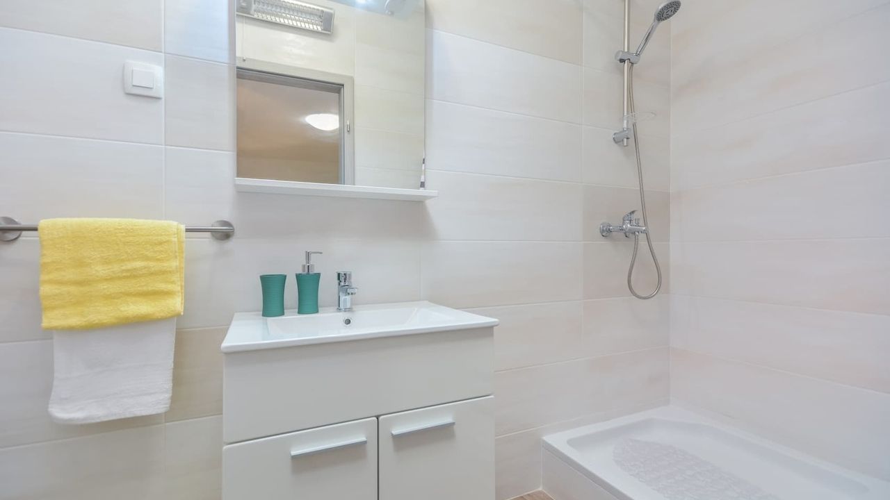 Auf dieser Etage befinden sich außerdem ein Badezimmer, ein Hauswirtschaftsraum (ideal zur Aufbewahrung von Gepäck) und direkter Zugang zur Außenterrasse.