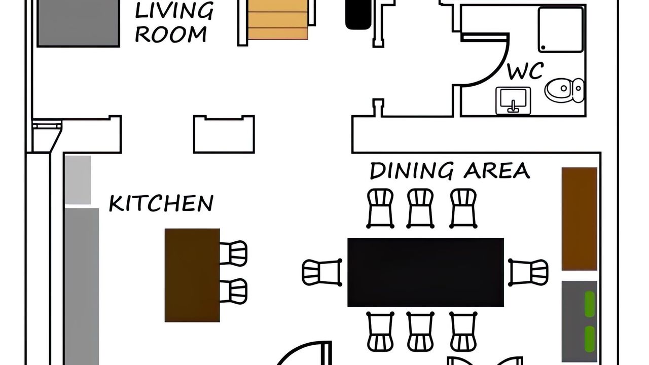 Im Erdgeschoss finden Sie einen großzügigen offenen Bereich, in dem Küche, Essbereich und Wohnzimmer zusammenkommen.