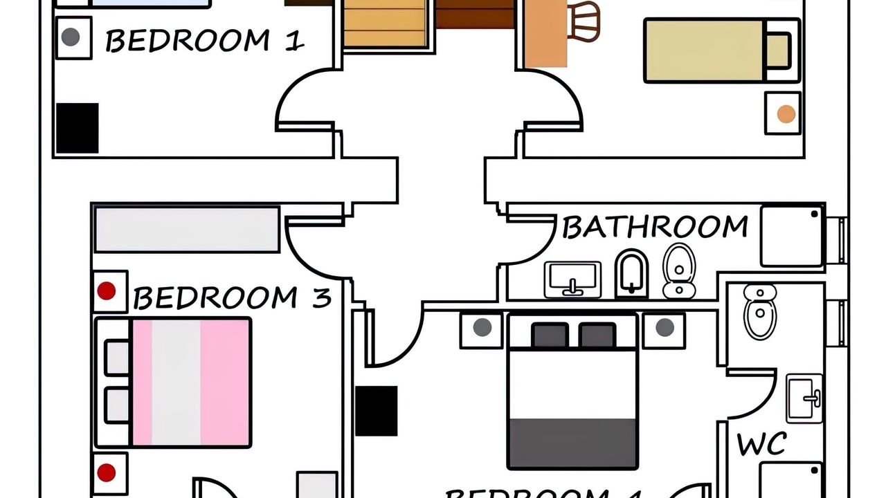 Im Obergeschoss gibt es vier komfortable Schlafzimmer und ein Badezimmer: