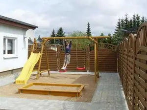 Das Ferienhaus ist ausgestattet mit einem Wohnraum, an dem eine offene Küche grenzt, zwei Schlafräumen und einem Badezimmer. Im Wohnraum stehen Ihnen eine Essecke sowie eine gemütliche Sitzecke mit Kaminofen, TV und Radio zur Verfügung. Die offene Küche ist bestückt mit Waschmaschine, Spülmaschine, 4-Platten-Herd mit Backofen, Kühlschrank und Mikrowelle. Ein Schlafraum ist ausgestattet mit zwei Einzelbetten, Kleiderschrank und TV. Ein weiterer Schlafraum ist möbeliert mit einem Doppelbett und einem großen Kleiderschrank. Im Bad befindet sich neben Dusche und WC, auch eine Fußbodenheizung. Ein Parkplatz sowie eine beleuchtete Terrasse mit Sitz- und Grillmöglichkeiten stehen zur Verfügung. Für unsere kleinen Urlaubskinder haben wir einen Kinderspielplatz auf dem Grundstück errichtet. Zwei Schaukeln, eine Rutsche, ein Buddelkasten, eine Liegewiese und eine gepflasterte Rundumbahn für Roller und Dreirad laden zum Spielen ein. Spielzeug ist vorhanden. Bettwäsche und Handtücher sind vorhanden. Anreise ab 16.00 Uhr, Abreise bis 10.00 Uhr.Sonstiges