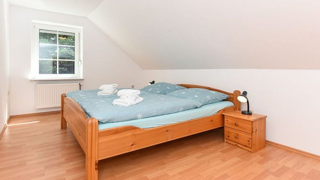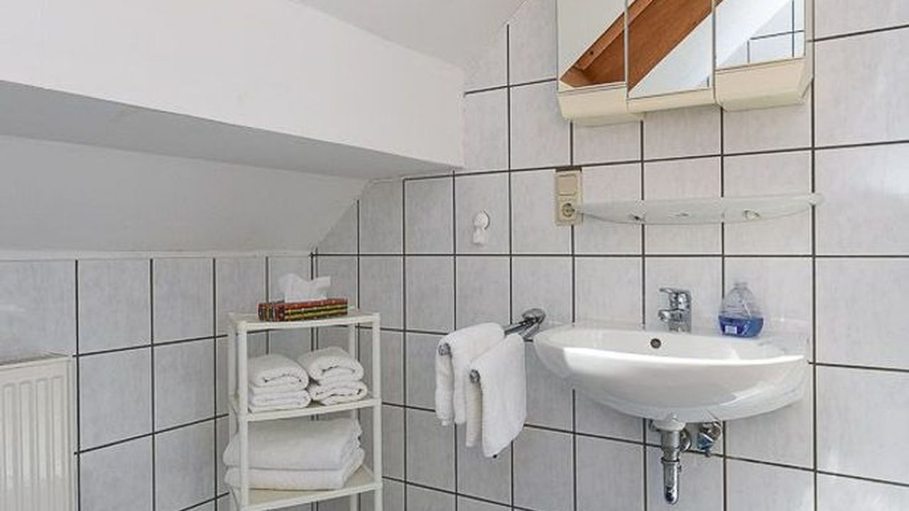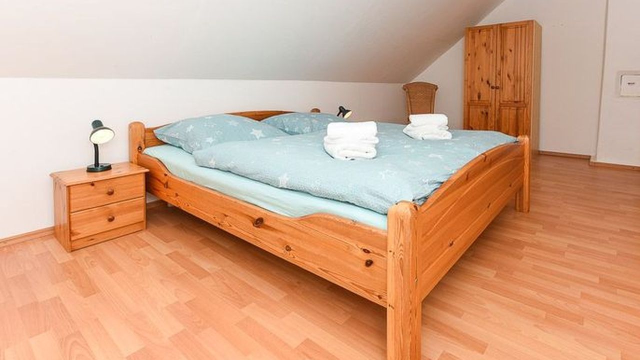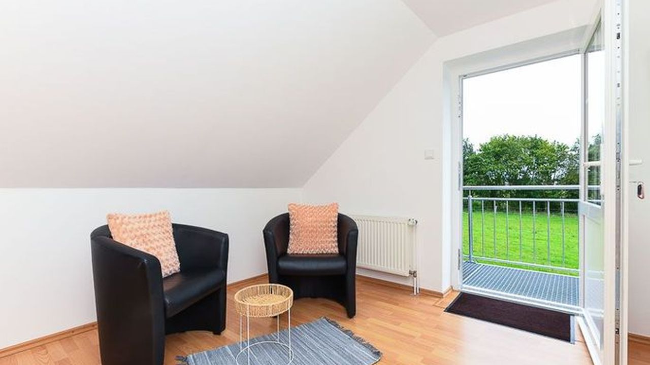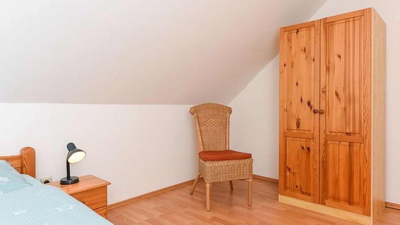 Größe ca. 40 Quadratmeter, Wohnzimmer, Küche, Schlafzimmer, Badezimmer mit Dusche, Waschtisch und WC, Obergeschoss, Terrasse am Haus, Parkplatz am Haus, optimal für 1 bis 2 Personen.Den separaten Eingang zur Ferienwohnung „Dobbe“ erreichen Sie über eine Außentreppe.
