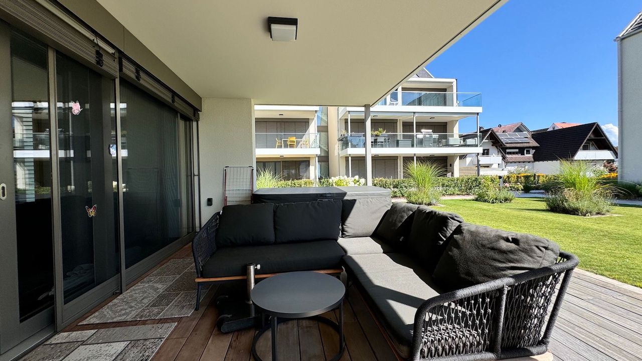 Luxuriöse Ferienwohnung mit Seeblick in LindauErleben Sie pure Entspannung in unserer stilvollen Ferienwohnung in Lindau am Bodensee. Diese exquisite Wohnung bietet einen atemberaubenden Seeblick von der großzügigen, offenen Terrasse, die mit einem eigenen Whirlpool ausgestattet ist – der perfekte Ort, um den Tag bei einem Glas Wein ausklingen zu lassen.