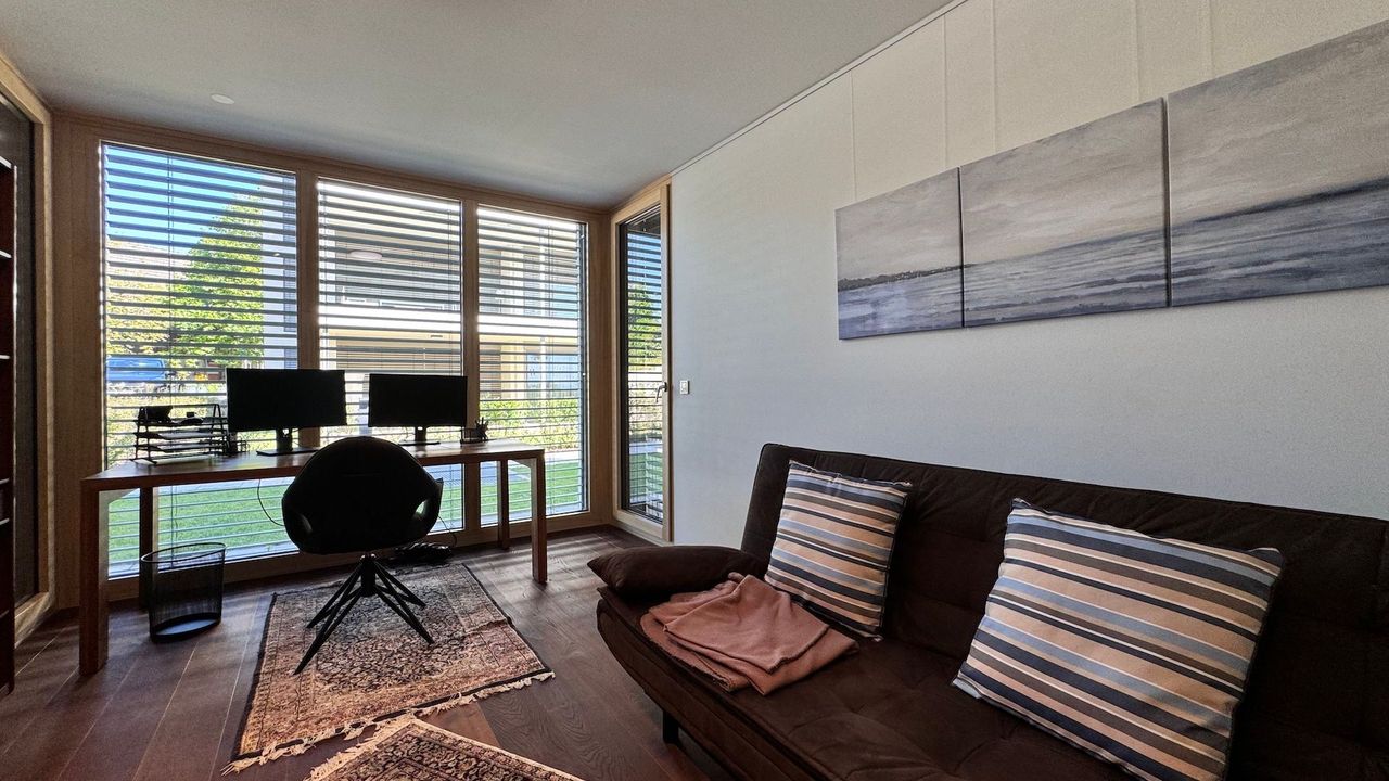 Mit zwei gemütlichen Schlafzimmern, die jeweils mit vollwertigen Doppelbetten ausgestattet sind, bietet die Wohnung idealen Komfort für Familien oder Paare. Ein zusätzliches Arbeitszimmer mit einer kleinen Couch, die auch als Schlafmöglichkeit für eine Person dient, bietet Flexibilität für alle Bedürfnisse. Im Wohnzimmer befindet sich zudem eine bequeme Schlafcouch, die weiteren Gästen Platz bietet.