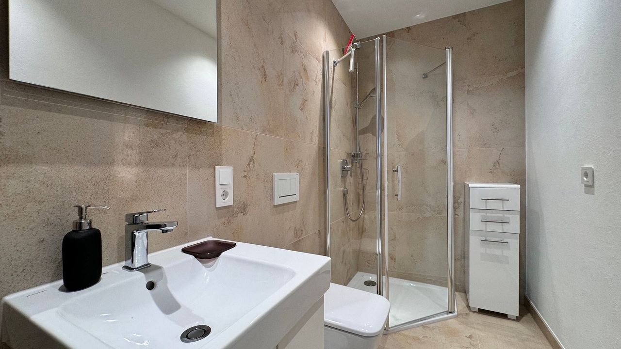 Die Wohnung verfügt über zwei moderne Badezimmer, sodass auch größere Gruppen komfortabel untergebracht sind. Für Ihr Fahrzeug steht ein sicherer Tiefgaragenstellplatz zur Verfügung.