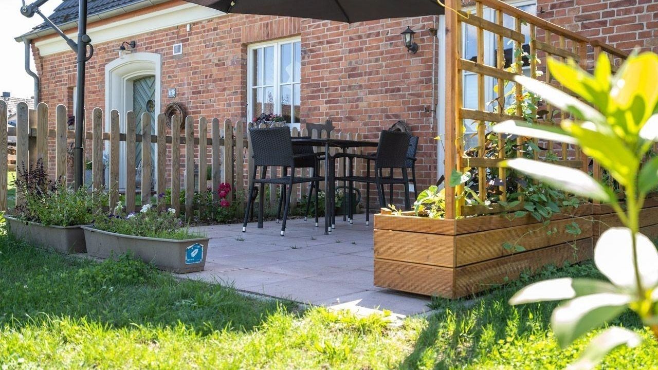 Die Ferienwohnung bietet einen einladenden Außenbereich mit einer privaten Terrasse, die zum Entspannen einlädt. Ein Holzkohlegrill steht zur Verfügung, ideal für gesellige Grillabende unter freiem Himmel. Hier kann man die Ruhe genießen und die frische Luft bei köstlichem Essen auf der Terrasse erleben. Der perfekte Ort für erholsame Stunden im Freien.