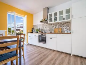 Die offene Wohnküche ist mit einem Geschirrspüler, einem Elektro-/Gasherd, einem Backofen, einer Mikrowelle, einem Kühlschrank und einer Gefriermöglichkeit ausgestattet, was das Zubereiten von Mahlzeiten erleichtert. Die Kaffeemaschine, der Wasserkocher und der Toaster sind ebenfalls vorhanden.