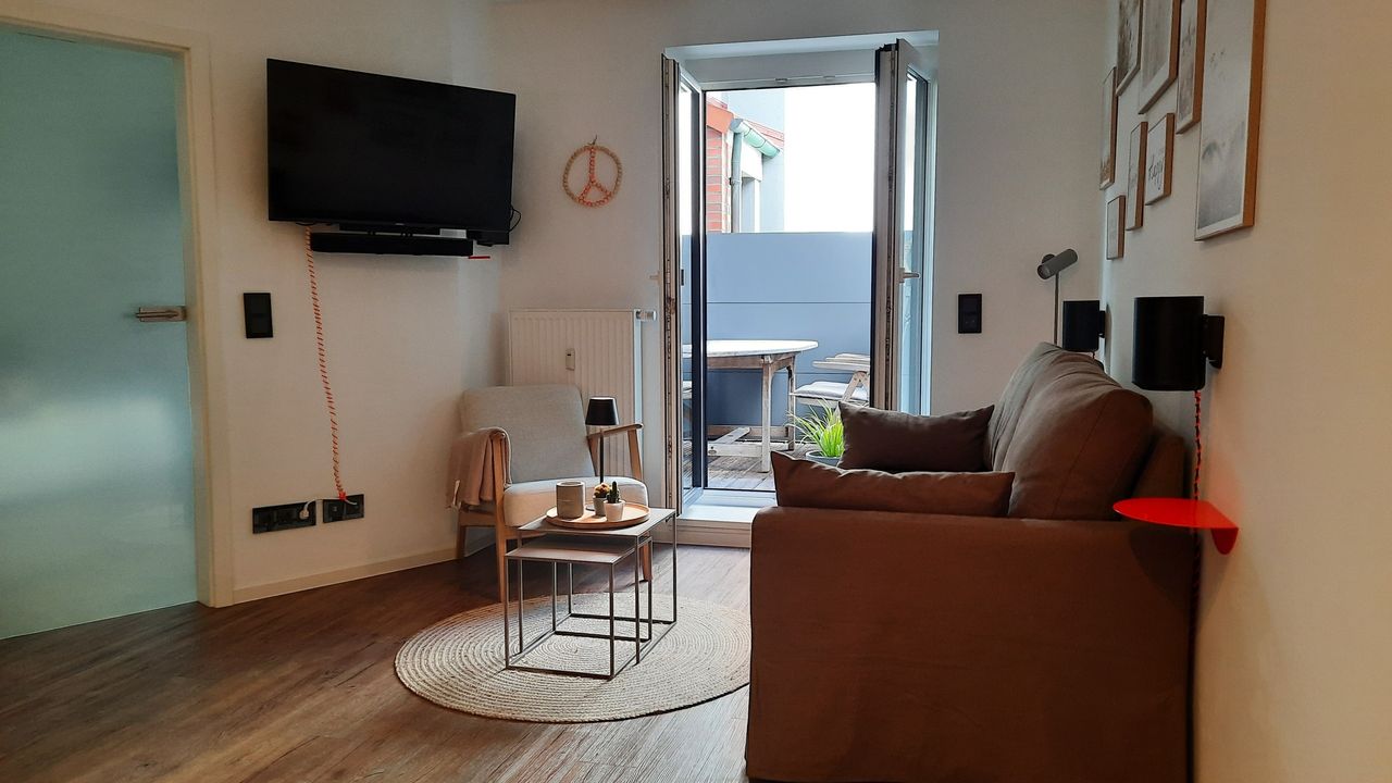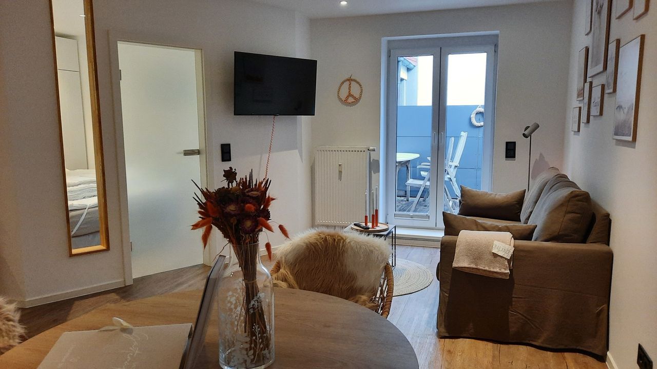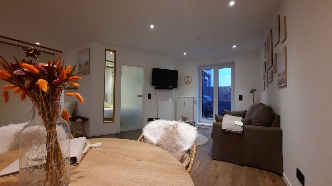 Im Erdgeschoss liegende 2 Raum Ferienwohnung mit ca. 41 qm, private Terrasse, Belüftungsanlage, zentral und direkt am Weststrand. Bis 4 Personen geeignet und buchbar. Mitte 2024 vollumfänglich renoviert.Bei der Ferienwohnung Lachmöwe by DeJu, welche Anfang 2025 vollumfänglich renoviert wurde, handelt es sich um ein gemütliches, im Erdgeschoss befindliches 2-Raum-Appartement mit Terrasse im Haus Meeresloft. Das Haus Meeresloft ist ein KFW-Energieeffizienzhaus 100. Die Wohnung verfügt somit mitunter über 3-fach verglaste Fenster, eine kontrollierte Be- und Entlüftungsanlage, elektrische Verdunklungsrolladen von außen sowie ultraeffiziente Beleuchtungsmittel in den Deckenspots.