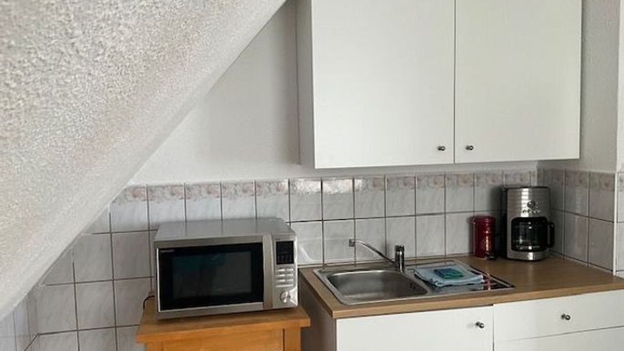 Ausstattung, Besonderheiten: Die Ferienwohnung ist vollständig ausgestattet und bietet alles, was Sie für einen angenehmen Aufenthalt benötigen. Die separate Küche verfügt über moderne Geräte wie Herd, Kühlschrank, Mikrowelle und Kaffeemaschine. Im kombinierten Wohn-/Schlafraum gibt es einen Fernseher, bequeme Sitzgelegenheiten und kostenloses WLAN. Das Doppelbett sorgt für erholsamen Schlaf, und das Badezimmer ist mit einer Dusche ausgestattet.
