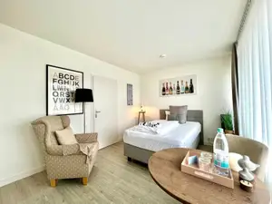 Moin Moin, das Appartement "Maxi" hat ein großes Herz für Alleinreisende. "Maxi" ist kompakte 23 Quadratmeter groß, liegt im zweiten Stock des Hauses in einer eher ruhigen Ecke von Westerland und doch sehr zentral, zum Strand und zum Shopping ist es nur ein Katzensprung. Die Ferienwohnung wurde vor Kurzem renoviert und mit einem Händchen für Wohlfühlatmosphäre neu ausgestattet. Wer hier urlaubt, freut sich außerdem über den kleinen Balkon, und ein eigener Parkplatz gehört auch noch dazu.Verfügbare Zusatzleistungen