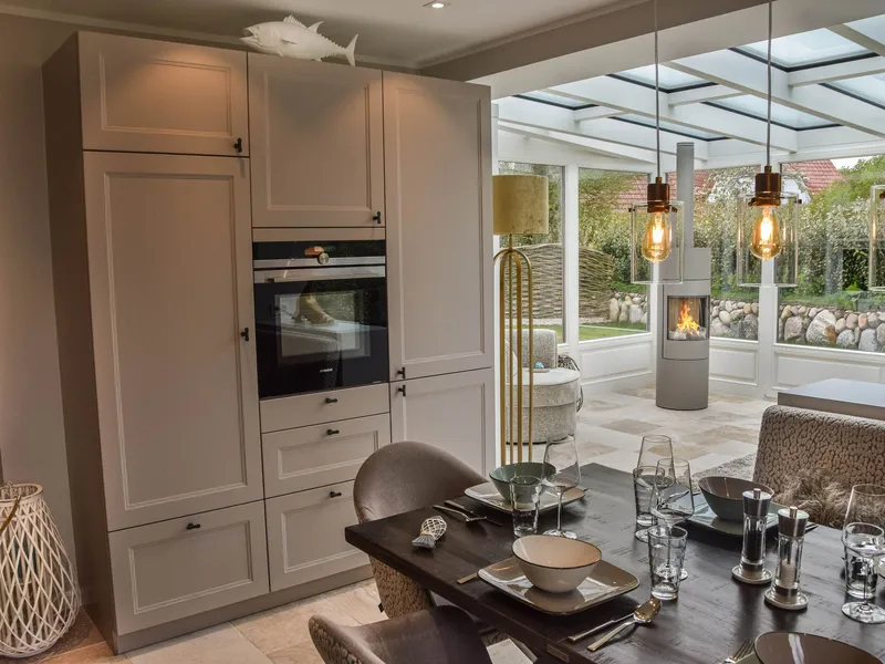 ExtraGROSSES UrlaubsvergnügenEndlich Sylt-Urlaub – und alle fahren mit: Diese großzügige Wohnung im Erdgeschoss eines frisch erbauten Hauses im klassischen Friesenstil bietet mit drei Schlafzimmern und zwei Bädern bis zu sechs glücklichen Gästen Platz und Privatsphäre. Die Küche ist mit ihrem großen, herrlich bequemen Essbereich und dem angrenzenden Wintergarten mit Kuschelsofas und Gaskamin das Herz dieses edel möblierten Feriendomizils. Ihre tolle Ausstattung lädt zu gemeinsamen Genussmomenten, der große Tisch zu ausgiebigem Pyjamafrühstück, zu Spieleabenden und langen Gesprächen bei Wein und Käse ein.