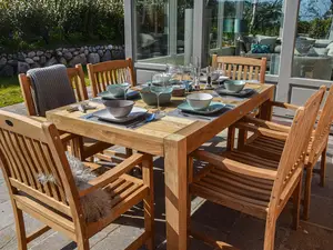 Sie sehen: Diese Wohnung ist wirklich der ideale Vergnügungsstandort, für Kleine wie für Große. Und wenn Ihnen nach Ruhe statt nach Rausgehen ist: Bleiben Sie einfach daheim und machen es sich auf den Teaksesseln Ihrer großzügigen Terrasse im eigenen Garten so richtig gemütlich. Ungestört, herrlich ruhig, mit Blick auf Friesenwall und Strandhafer, als Soundtrack Möwen und leises Meeresrauschen … so lässt sich’s leben hier im „Strand und Meer“. Am liebsten für immer. Aber der nächste Urlaub kommt bestimmt – und Sie sicher wieder.