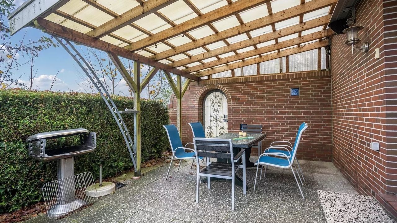 Zu Ihrem privaten Außenbereich gehören ein Garten, Gartenmöbel und eine offene Terrasse.