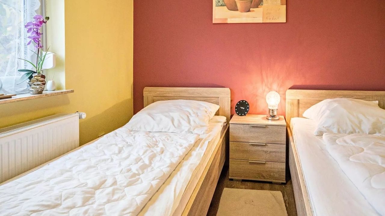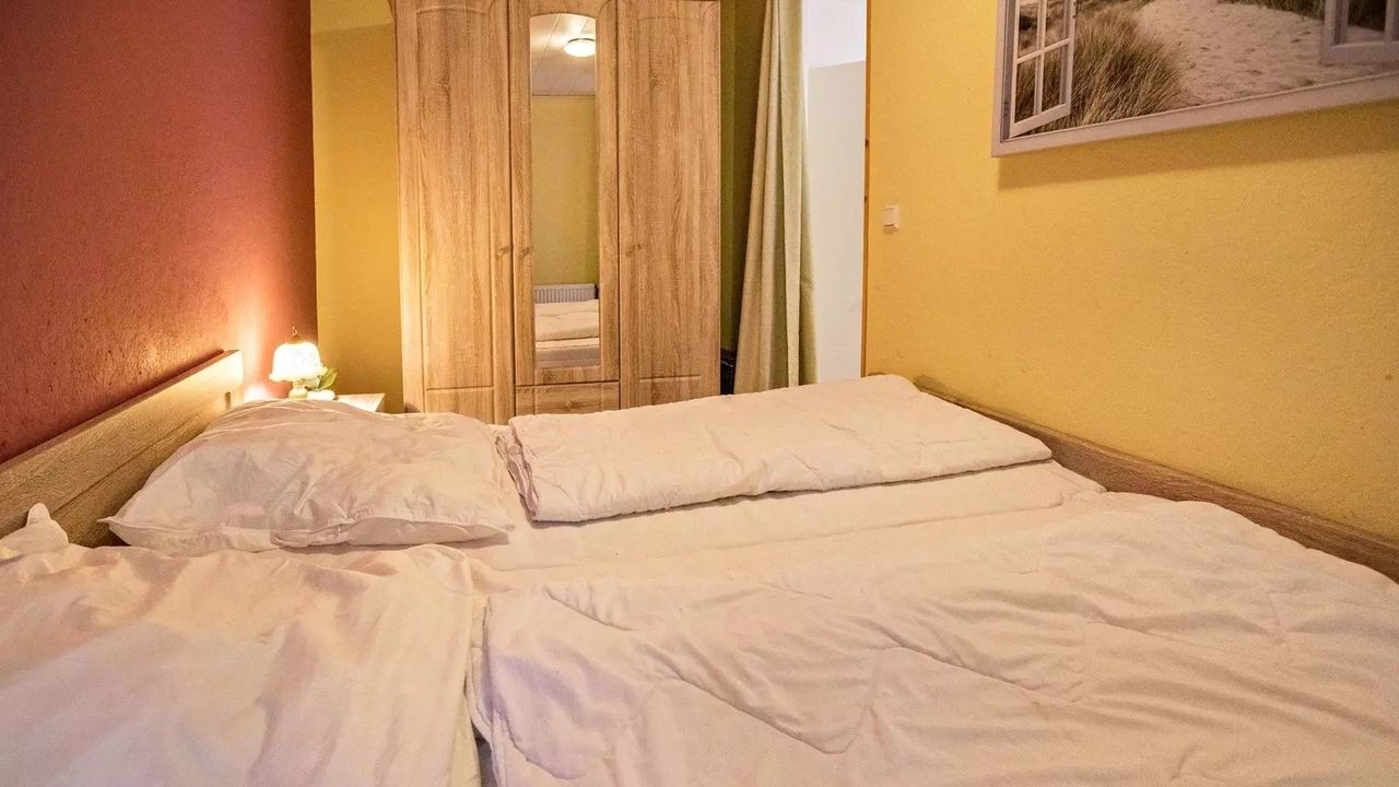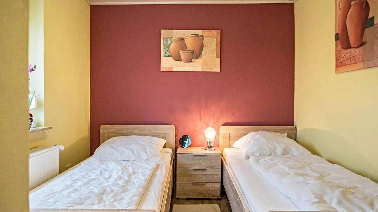 Schlafzimmer 2 hat 2 Einzelbetten.