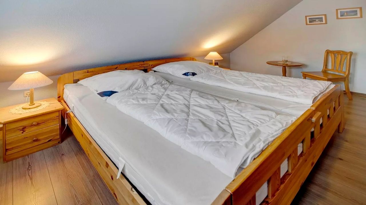Schlafzimmer 1 hat 1 Queensize-Bett.