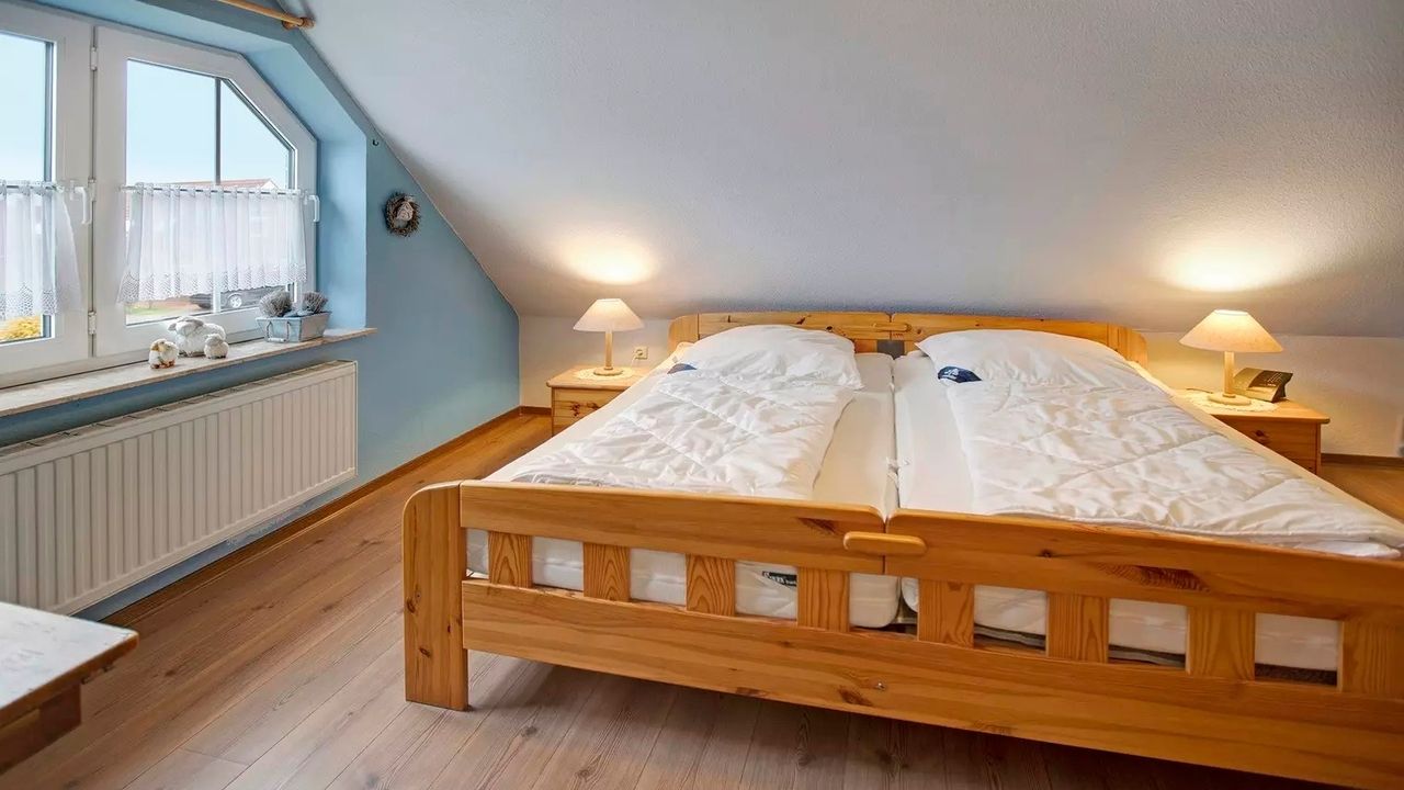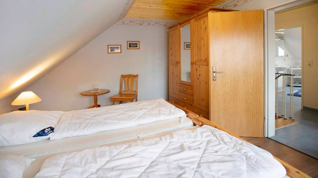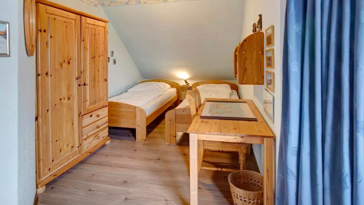Schlafzimmer 2 hat 2 Einzelbetten.