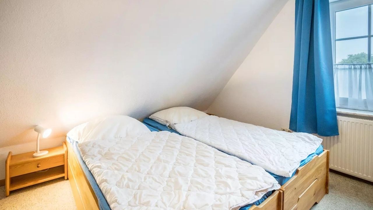 Schlafzimmer 3 hat 2 Einzelbetten.