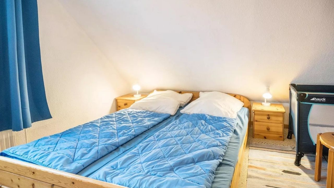 Schlafzimmer 2 hat 2 Einzelbetten.