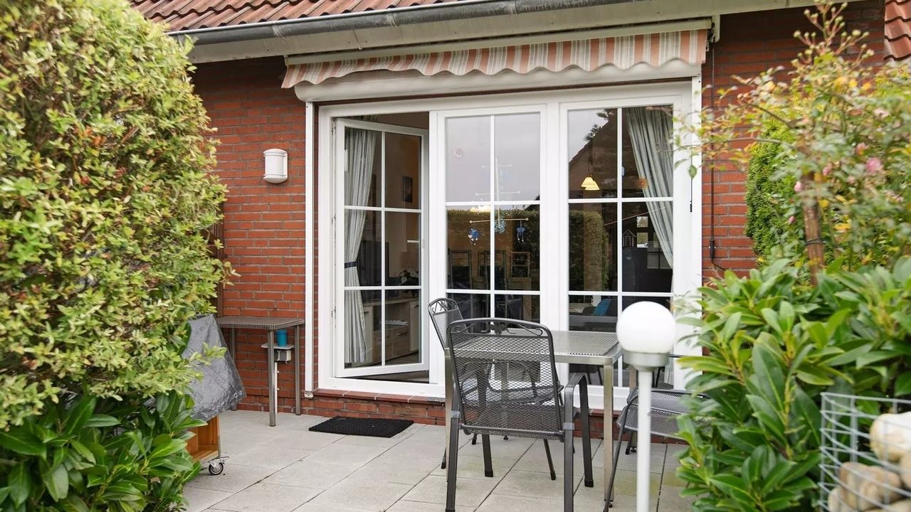 Das Besondere an dieser Unterkunft ist der private Außenbereich mit Garten, Gartenmöbeln, Strandkorb und überdachter Terrasse.