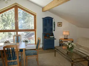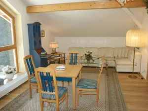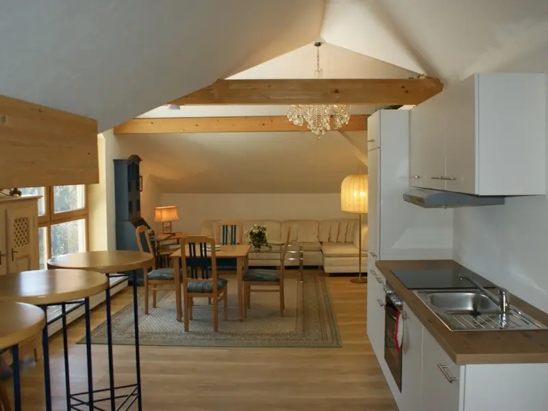 Die Ferienwohnung Luna verfügt über eine Wohnküche mit Küchenzeile, Essgruppe und Polstergruppe mit Sat-TV sowie gratis WLAN.