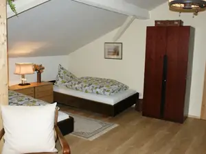 Weiter befinden sich in der Ferienwohnung 2 großzügige Betten mit den Maßen: 120 X 210cm, ein Einzelbett + Sofa.