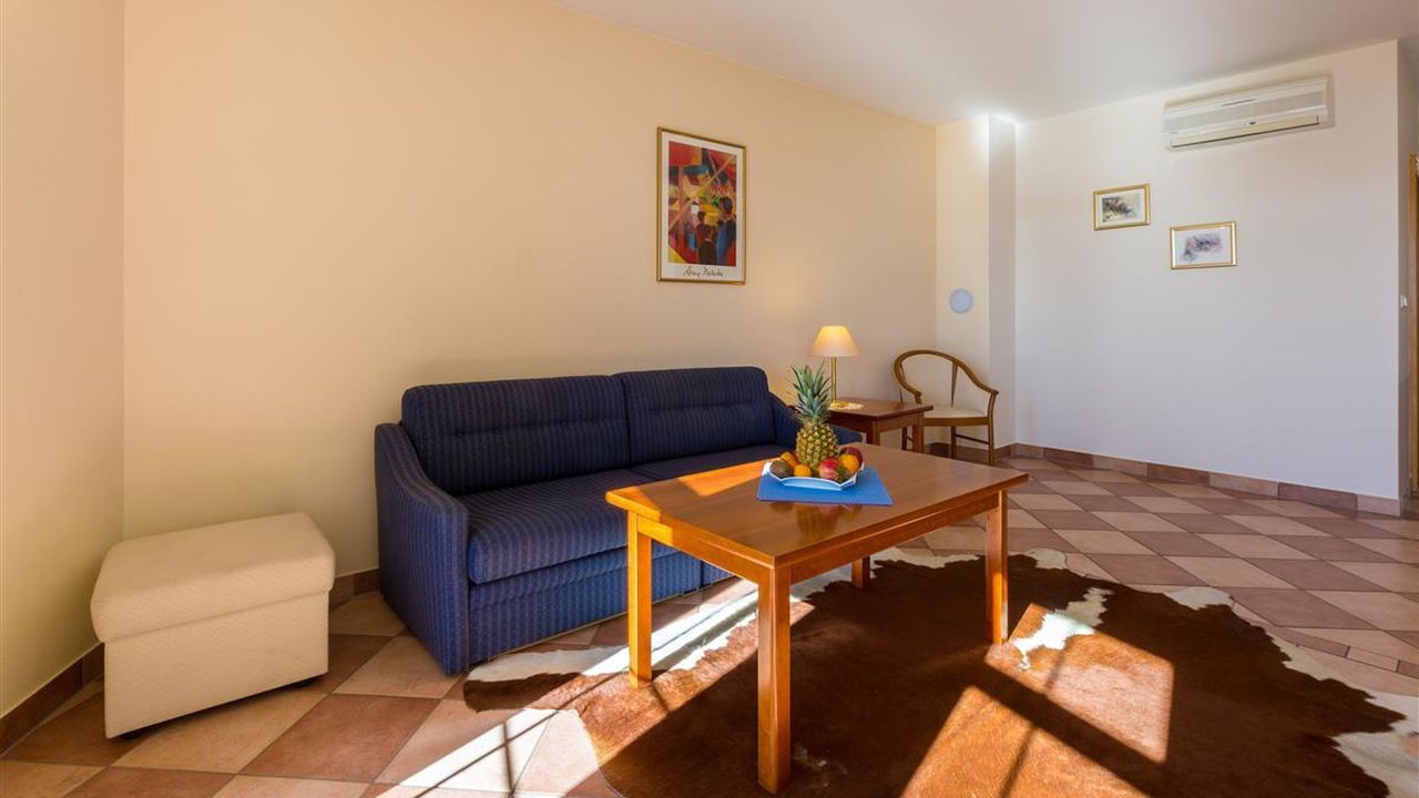 Das Appartement ist voll klimatisiert ( 2 Klimaanlagen) und mit jeglichem Komfort ausgestattet. F and uuml;r bis zu vier Personen. Ein Schlafzimmer mit Doppelbett, ein Wohn/Esszimmer mit intigrierter K and uuml;che in dem sich eine Schlafcouch f and uuml;r 2 Personen befindet, Bad mitDusche/WC und Bidet, Balkon mit Tisch und St and uuml;hlen.
