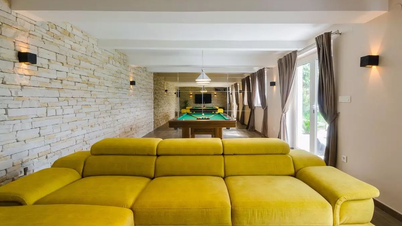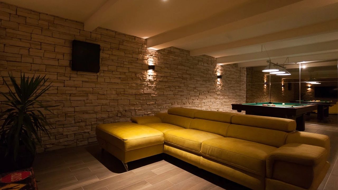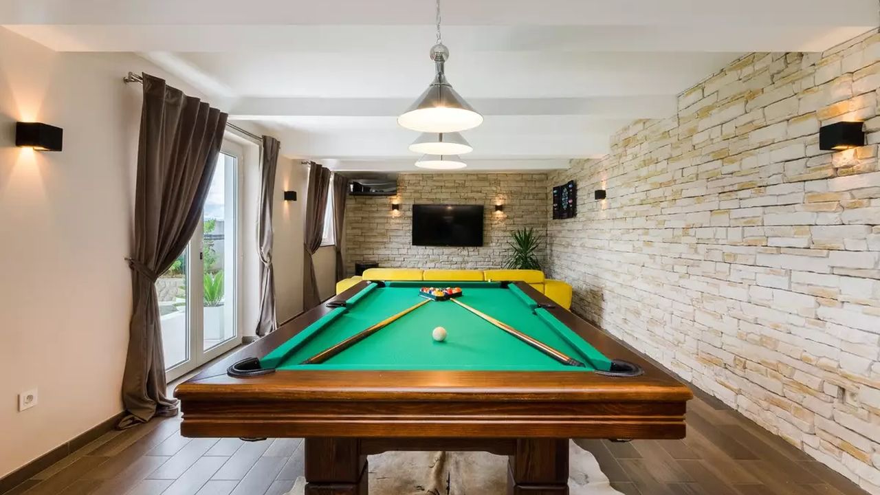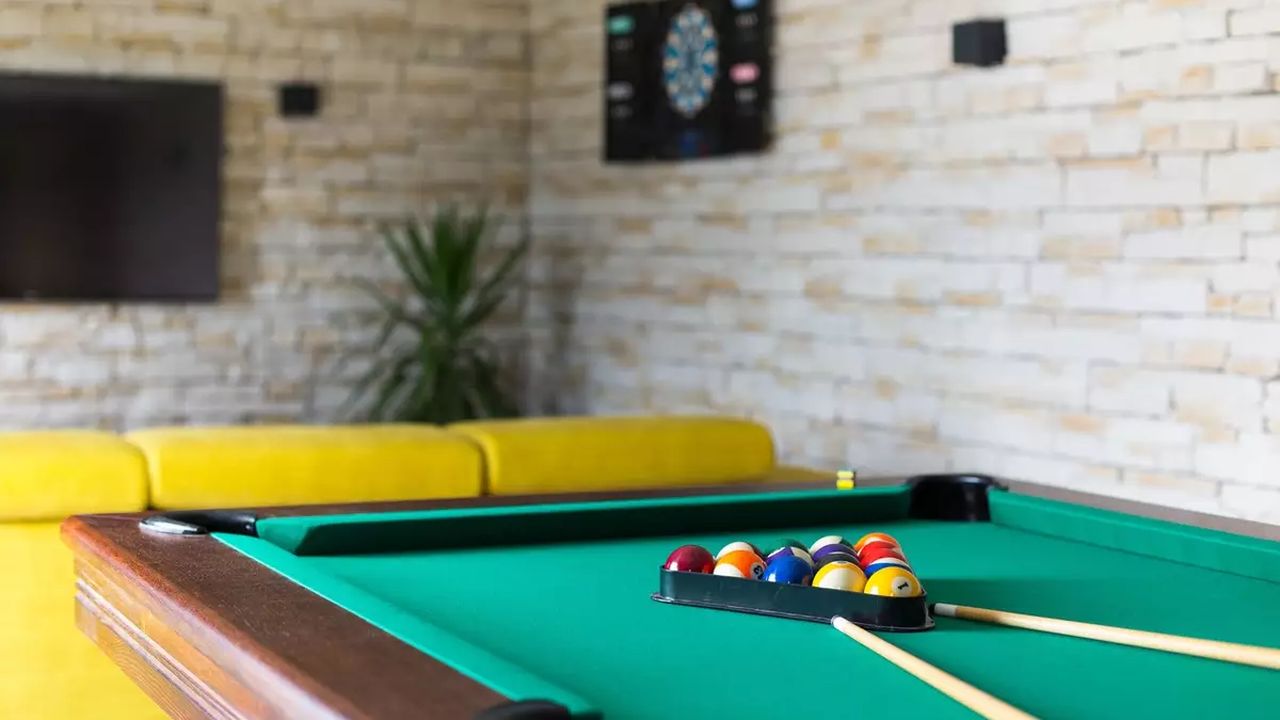Im Erdgescho and szlig; des Hauses befindet sich ein gemeinsamer Aufenthaltsraum der mit einem Billardtisch, einer Darts-Konsole einem Heimkino und einer Playstation 4 mit Spielen ausgestatet ist.