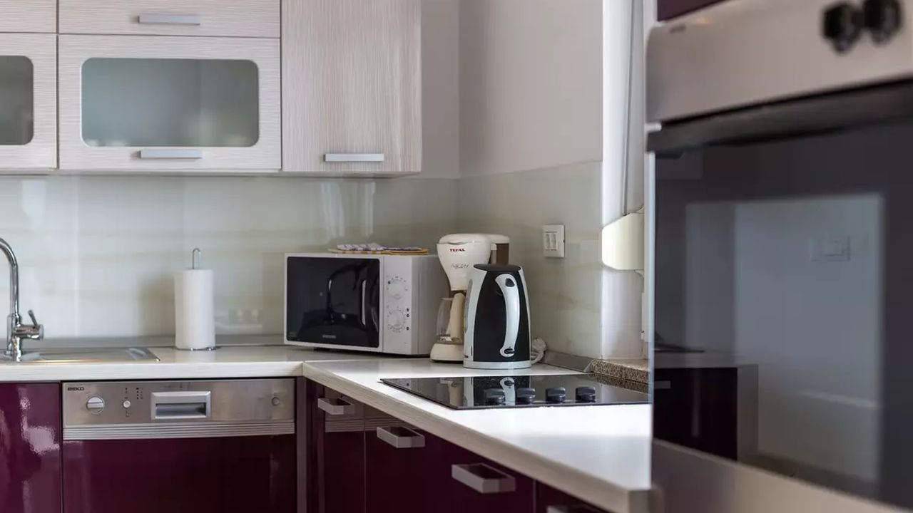 K and uuml;che, Geschirr, K and uuml;chenhandt and uuml;cher, Elektroherd, Kochplatten: 4, Backr and ouml;hre, K and uuml;hlschrank mit Gefrierfach, Filterkaffeemaschine, Wasserkocher, Mikrowelle, Toaster, Geschirrsp and uuml;lmaschine