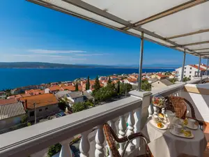 Sch and ouml;n eingerichtete Wohnung f and uuml;r 4-5 Personen in Crikvenica.Die 90 m and sup2; gro and szlig;e Wohnung f and uuml;r 4-5 Personen befindet sich im 3. Stock des Hauses am Meer und ist in ein Einzelzimmer, zwei Doppelzimmer, zwei Badezimmer, ein Wohn/Esszimmer, ein Raum und eine K and uuml;che unterteilt. Vom Wohnzimmer und Schlafzimmer aus haben Sie direkten Zugang zum Balkon mit einzigartigem Meerblick.