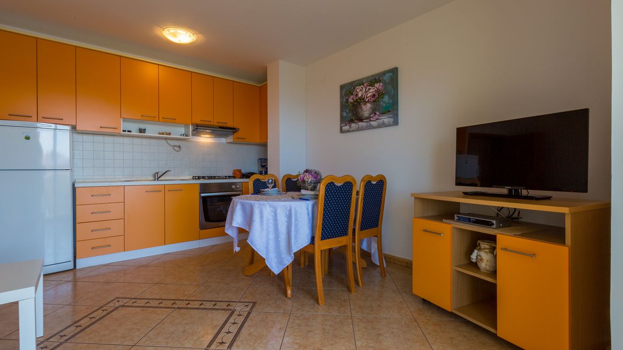 Sehr gepflegtes Objekt f and uuml;r 2-4 Personen ab 42 and nbsp;m and sup2;, auf dem ersten Stock befindet sich im beliebten Vorort von Crikvenica-Dramalj!Diese gem and uuml;tliche und ruhig gelegene Ferienwohnung besteht aus einem Wohn/Esszimmer mit K and uuml;che, einem Schlafzimmer, einem Badezimmer und einem angenehmen Balkon.