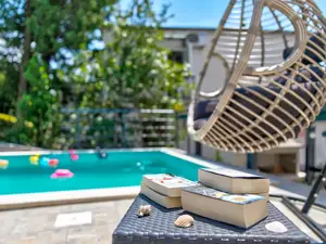 Dieses wundersch and ouml;ne Ferienhaus befindet sich in einer ruhigen und schattigen Lage, nur 200 Meter vom Meer entfernt, und bietet die perfekte Umgebung f and uuml;r einen erholsamen Urlaub. Das Haus verf and uuml;gt and uuml;ber sechs voll ausgestattete Apartments zur Vermietung.Den G and auml;sten stehen zahlreiche Annehmlichkeiten zur Verf and uuml;gung, darunter ein and uuml;berdachter Wohnbereich mit einem Billardtisch sowie eine zus and auml;tzliche and uuml;berdachte Terrasse mit Grill, ideal f and uuml;r geselliges Beisammensein und entspannte Abende. Ein besonderes Highlight des Hauses ist der Whirlpool in der N and auml;he des Sitzbereichs mit drei Sitzen und zwei Liegen. Die Nutzung des Whirlpools muss im Voraus mit dem Vermieter vereinbart werden und ist f and uuml;r Kinder unter 15 Jahren nicht gestattet.