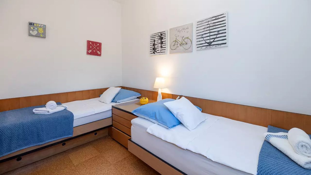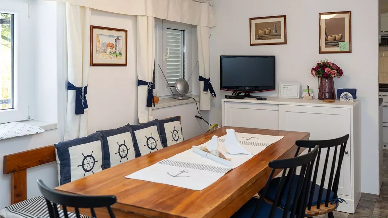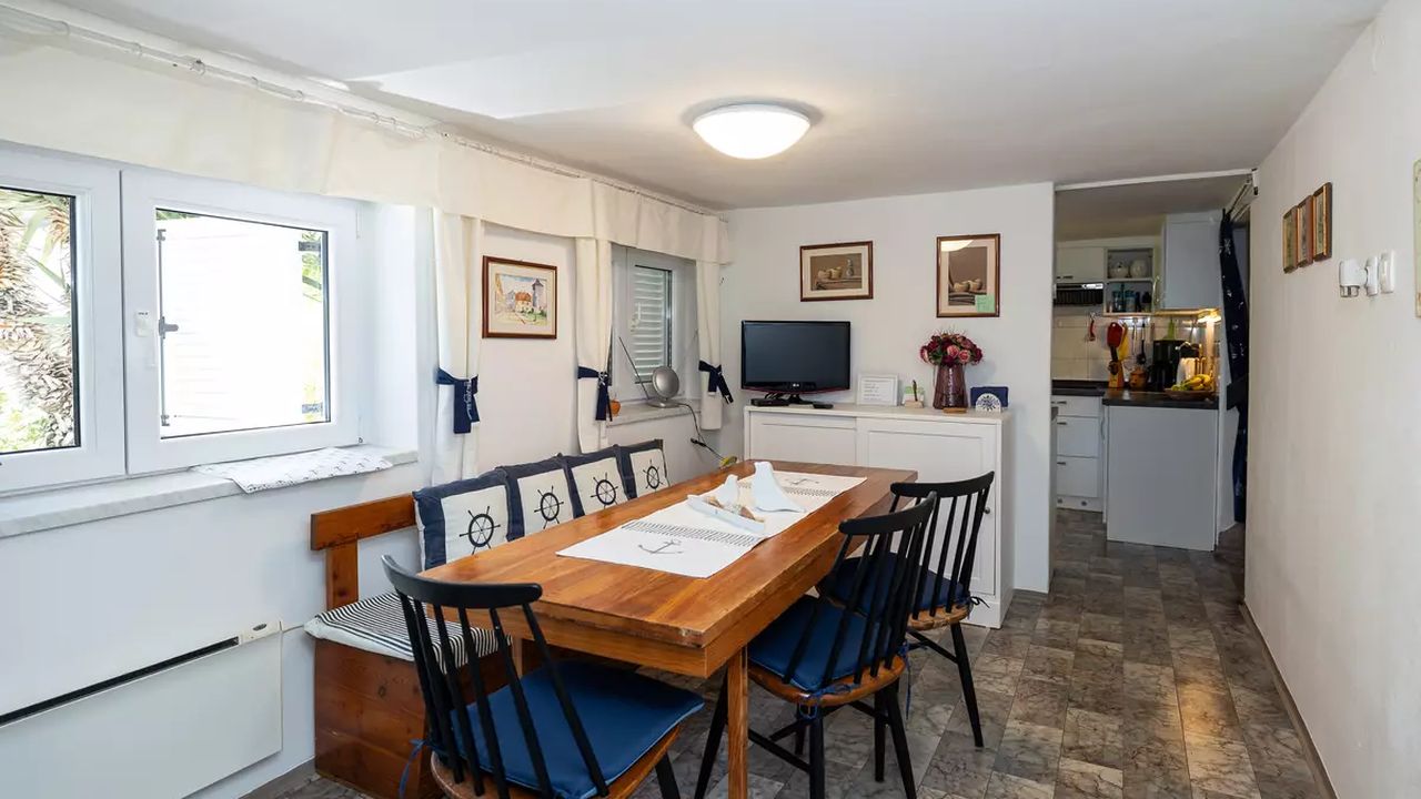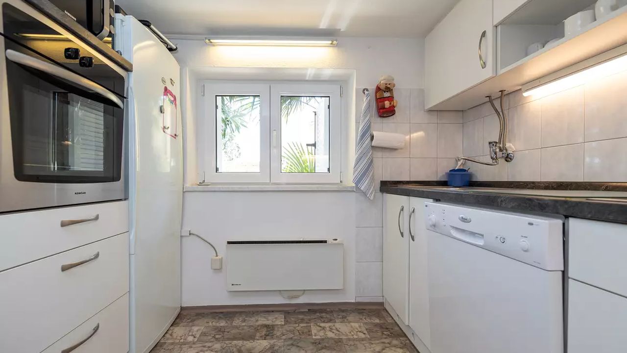 Das sehr sch and ouml;ne Ferienhaus, f and uuml;r 4 Personen, befindet sich in ruhiger, idyllischer Lage in Crikvenica ca. 80 m vom Meer gelegen. Das Ferienhaus ist zum Alleinbewohnen und hat ca. 65 m and sup2; und ein 580 m and sup2; gro and szlig;en Garten mit mediterraner Vegetation und mehreren Sitzgelegenheiten. Es sind 2 Klimaanlagen!Die 85 m and sup2; erstrecken sich auf mehrere Etagen und verf and uuml;gt and uuml;ber eine gem and uuml;tlichen Essbereich mit einer komplett ausgestatteten K and uuml;che, einem seperaten Wohnzimmer der einen Ausgang auf den Balkon hat, 2 Schlafzimmer und einem badezimmer mit Dusche.