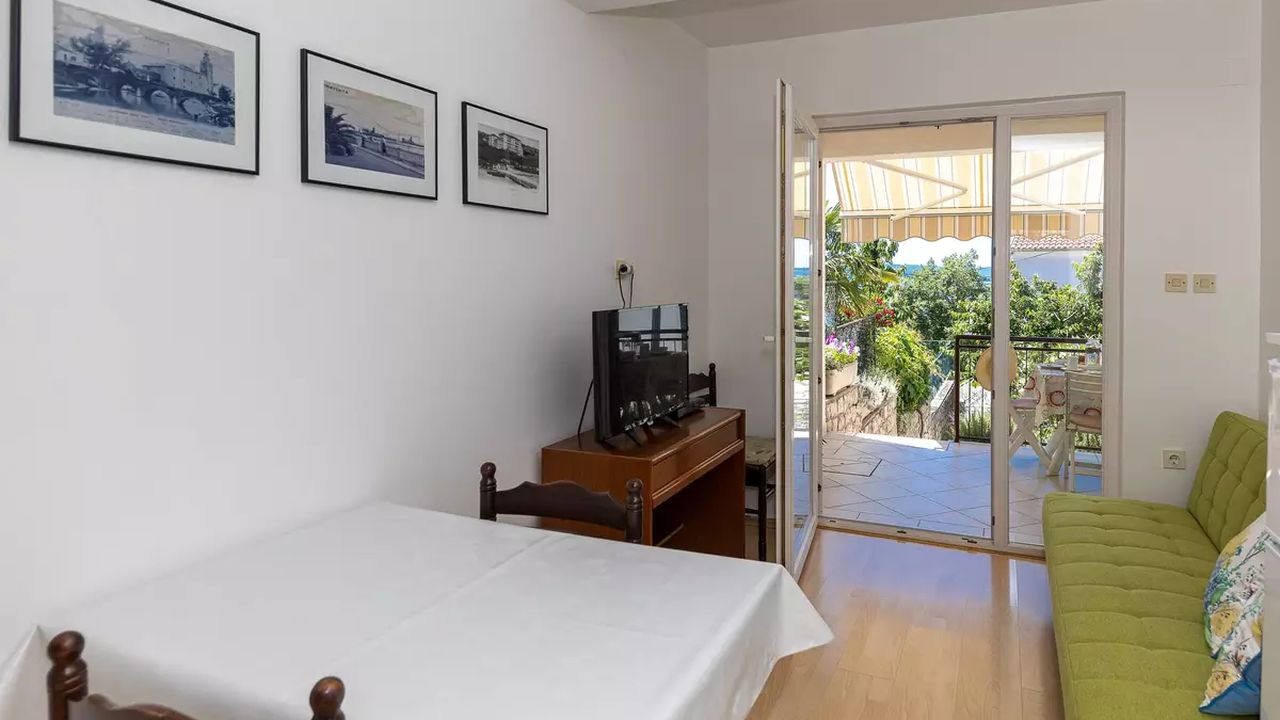 Nur einige Schritte vom n and auml;chsten Strand in Crikvenica befindet sich diese gepflegte und gem and uuml;tliche Ferienunterkunft .Die im hohen Erdgeschoss liegende Ferienwohnung ist mit einem Wohn/Esszimmer mit K and uuml;che, einem Schlafzimmer, einem Badezimmer mit Dusche und einer m and ouml;blierten Terrasse ausgestattet.