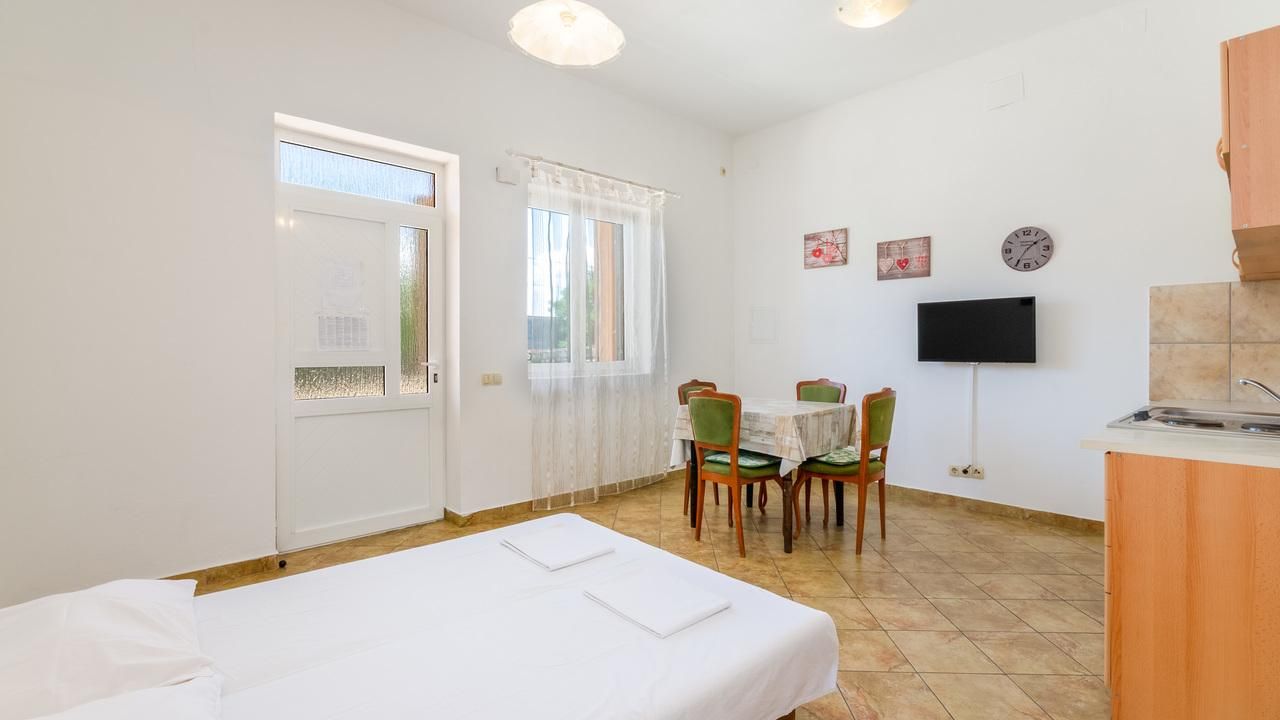 Das Objekt befindet sich nur 100 m vom Meer entfernt, mehrere gute Restaurants sind im Umkreis, ein kleines aber feines Lebensmittelgeschaeft befindet sich in unmittelbarer N and auml;he.Bestehend ist diese gem and uuml;tliche Ferienunterkunft aus einem Wohn/Esszimmer und K and uuml;che, einem Schlafzimmer, einem Badezimmer und eine terrasse mit Tisch und St and uuml;hlen. Im Wohnbereich ist eine Schlafcouch f and uuml;r 2 weitere Personen.