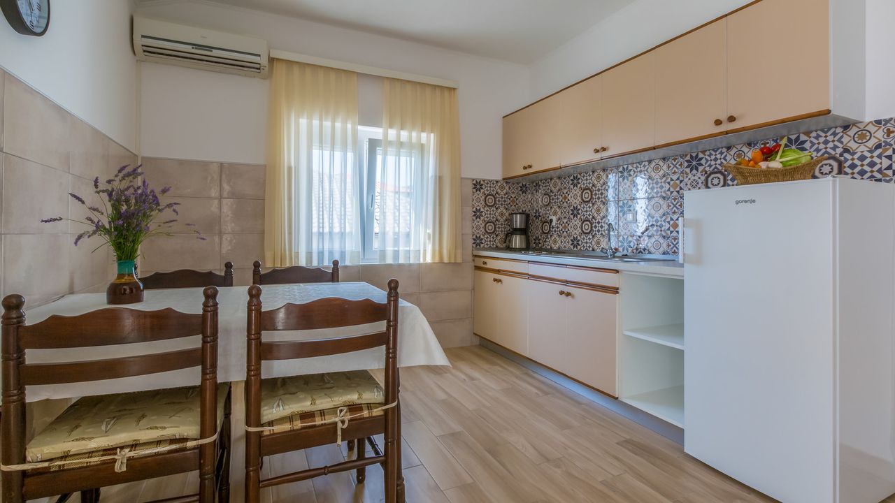 Nur einige Schritte vom n and auml;chsten Strand in Crikvenica befindet sich diese gepflegte und gem and uuml;tliche Ferienunterkunft .Die im 2. Obergeschoss liegende Ferienwohnung ist mit einem Wohn/Esszimmer mit K and uuml;che, zwei Schlafzimmer, einem Badezimmer mit Dusche und einem m and ouml;blierten Balkon mit Meerblick ausgestattet.