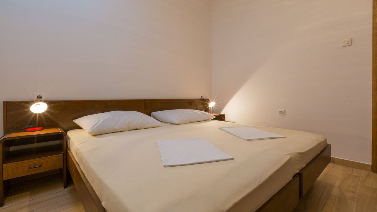 Doppelzimmer mit Doppelbett, Laminat