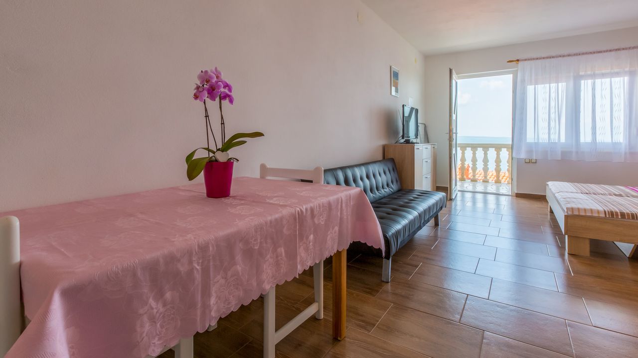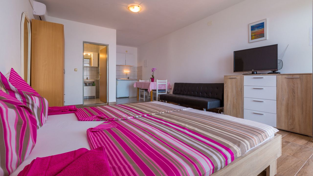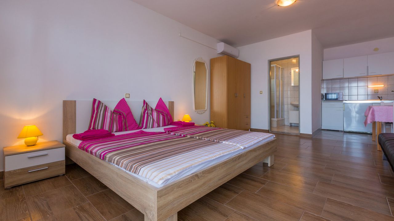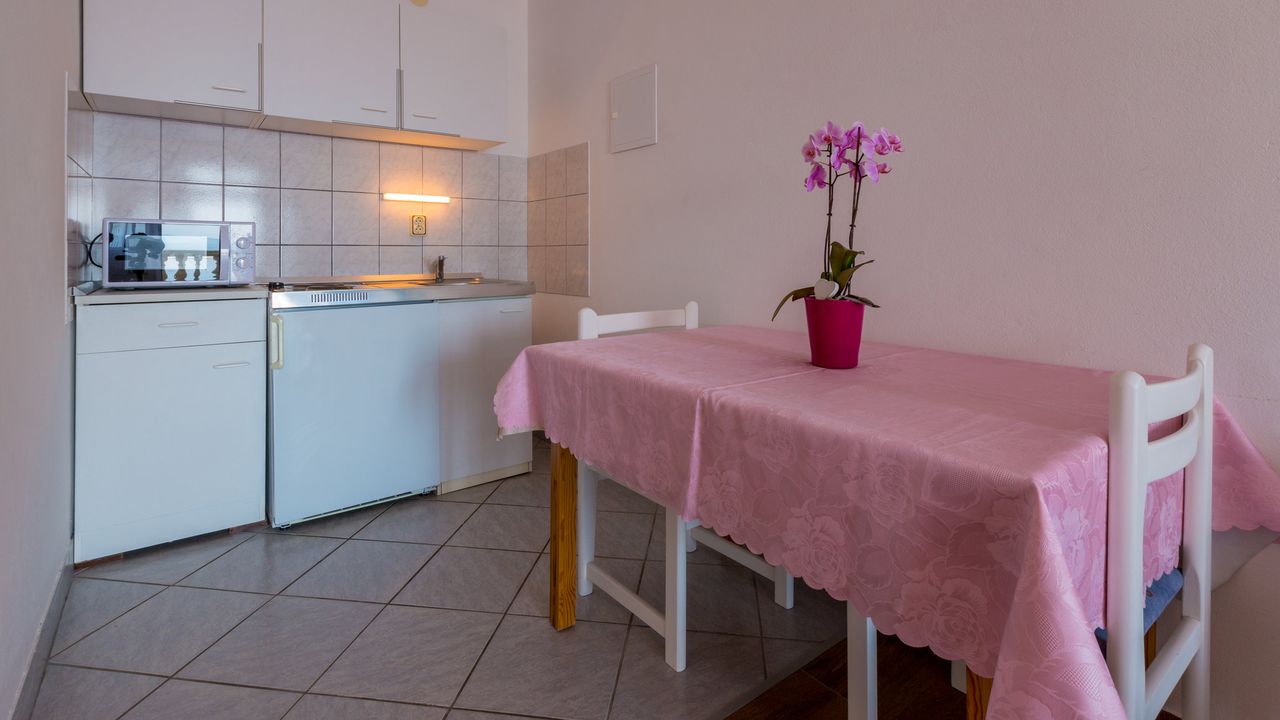 Dieses Studio-Apartment befindet sich in Dramalj an der Riviera von Crikvenica und bietet Platz f and uuml;r maximal 2 Personen. Die Anlage ist ein Studio (= Wohnzimmer, Schlafzimmer und K and uuml;chnische sind ein Raum). Die Wohnung verf and uuml;gt and uuml;ber ein Doppelbett, eine Kochnische, ein Badezimmer mit Dusche, Balkon, Sat-TV und WLAN. Park- und Grillm and ouml;glichkeiten sind ebenfalls vorhanden.Es gibt auch eine gemeinsame Terrasse und einen Swimmingpool, der von allen G and auml;sten genutzt werden kann. Der Pool ist in Betrieb 01.06.-30.09.