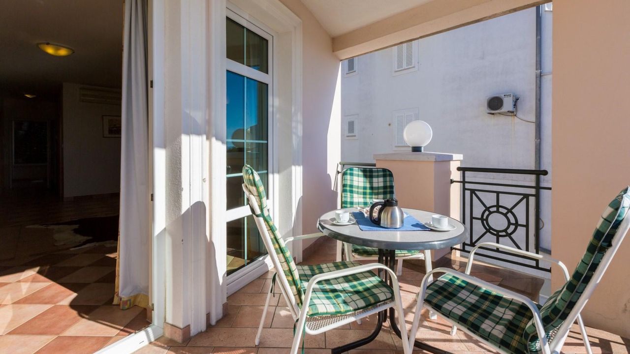 eigener Balkon, teilweise and uuml;berdacht, Bestuhlung, Balkongr and ouml; and szlig;e: 5 m and sup2;