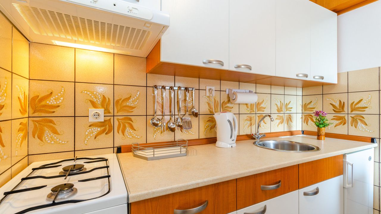 K and uuml;che, Geschirr, K and uuml;chenhandt and uuml;cher, Gasherd, Kochplatten: 2, K and uuml;hlschrank mit Gefrierfach, Filterkaffeemaschine