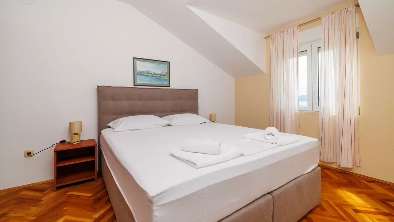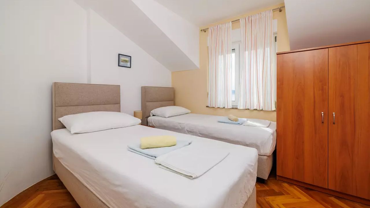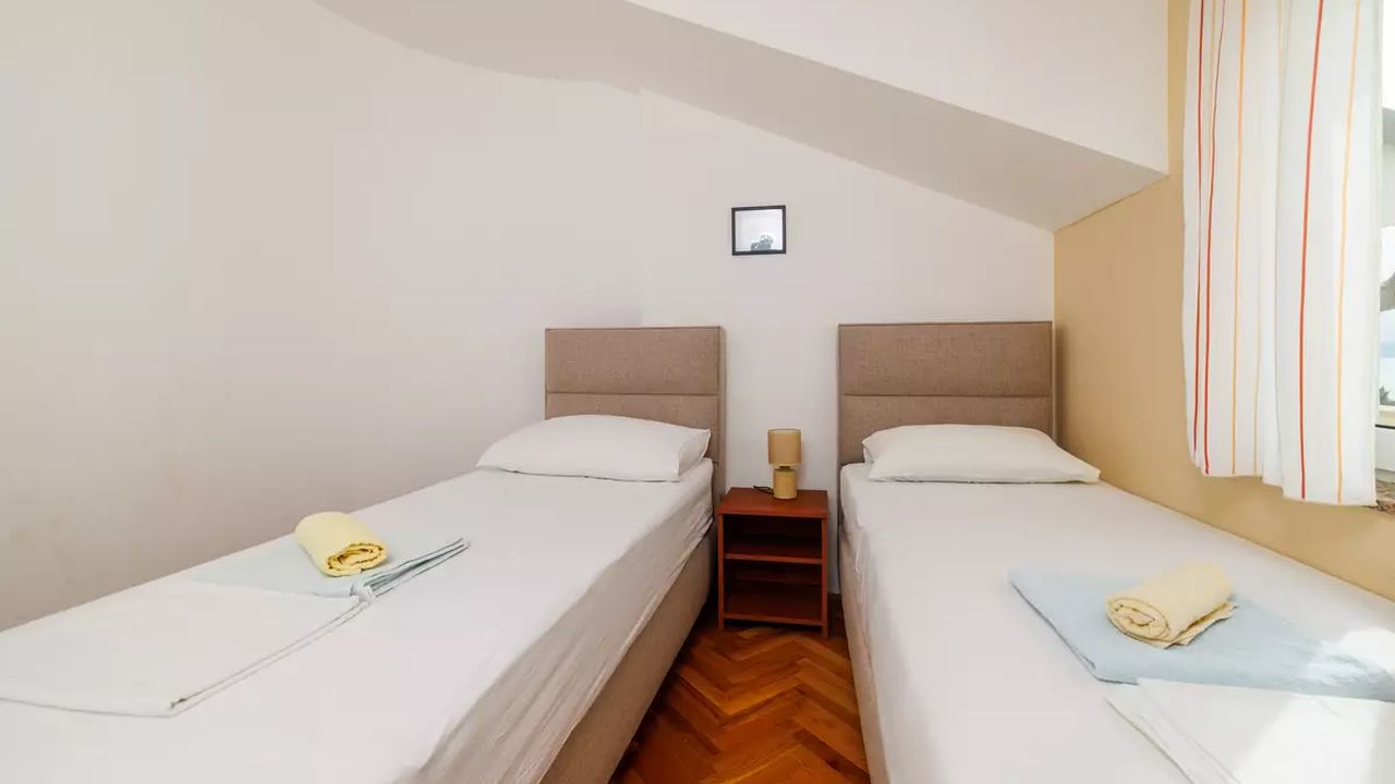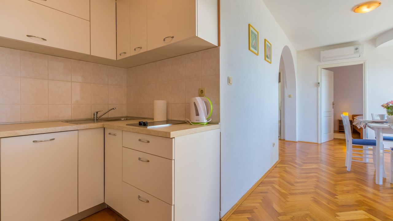 Ferienwohnung f and uuml;r 4 Personen in Crikvenica, auf dem drittem Stock, 45 m and sup2;, 2 Schlafzimmer, 1 Bad, Balkon mit Meerblick, Klimaanlage, Sat/TV, Parkplatz auf dem Grundst and uuml;ck, Grill. Der Strand ist ca. 150 m und Zentrum ist ca. 350 m.Diese Ferienwohnung die sich nicht weit von dem Stadtzentrum von Crikvenica und einem der sch and ouml;nsten Kiesstr and auml;nde Crikvenicas befindet. Wegen der N and auml;he zum Zentrum und Strand sehr gut geeignet f and uuml;r G and auml;ste welche Ihr Fahrzeug nicht viel nutzen m and ouml;chten.