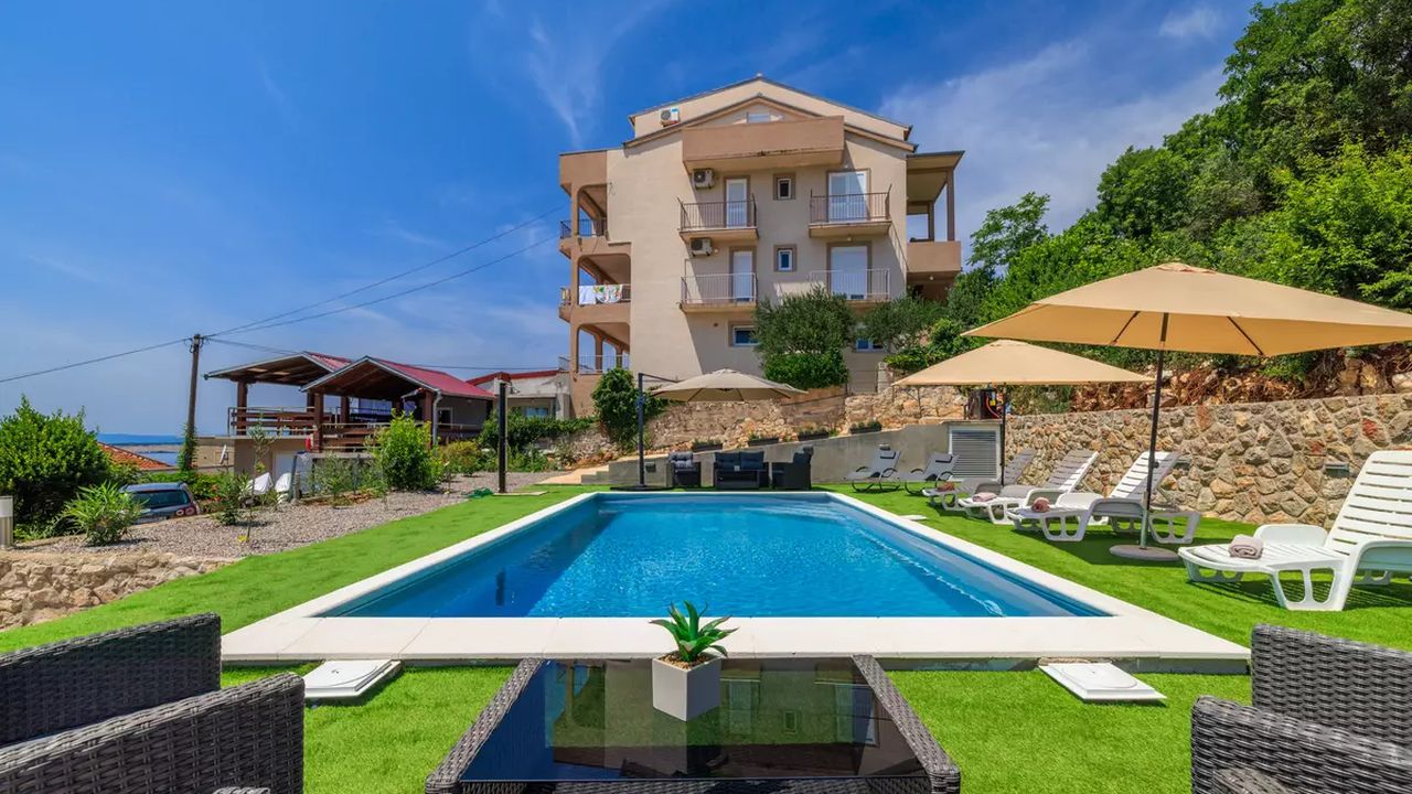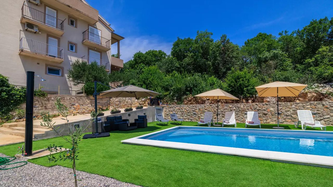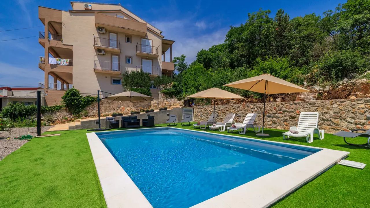 Sch and ouml;ne und moderne Apartments mit Swimmingpool, gelegen in einer ruhigen und angenehmen Umgebung, ideal f and uuml;r einen erholsamen Urlaub. Sie befinden sich in Dramalj, einem malerischen Vorort von Crikvenica, der eine perfekte Kombination aus nat and uuml;rlicher Umgebung und N and auml;he zum Meer bietet.G and auml;ste k and ouml;nnen zahlreiche Annehmlichkeiten genie and szlig;en, darunter ein gemeinschaftlicher Swimmingpool, der vom 1. Juni bis 30. September in Betrieb ist, gesicherte Parkpl and auml;tze, die M and ouml;glichkeit, Haustiere gegen eine t and auml;gliche Geb and uuml;hr von 8,00 EUR mitzubringen, eine Klimaanlage, die im Preis inbegriffen ist, und kostenloses Wi-Fi.