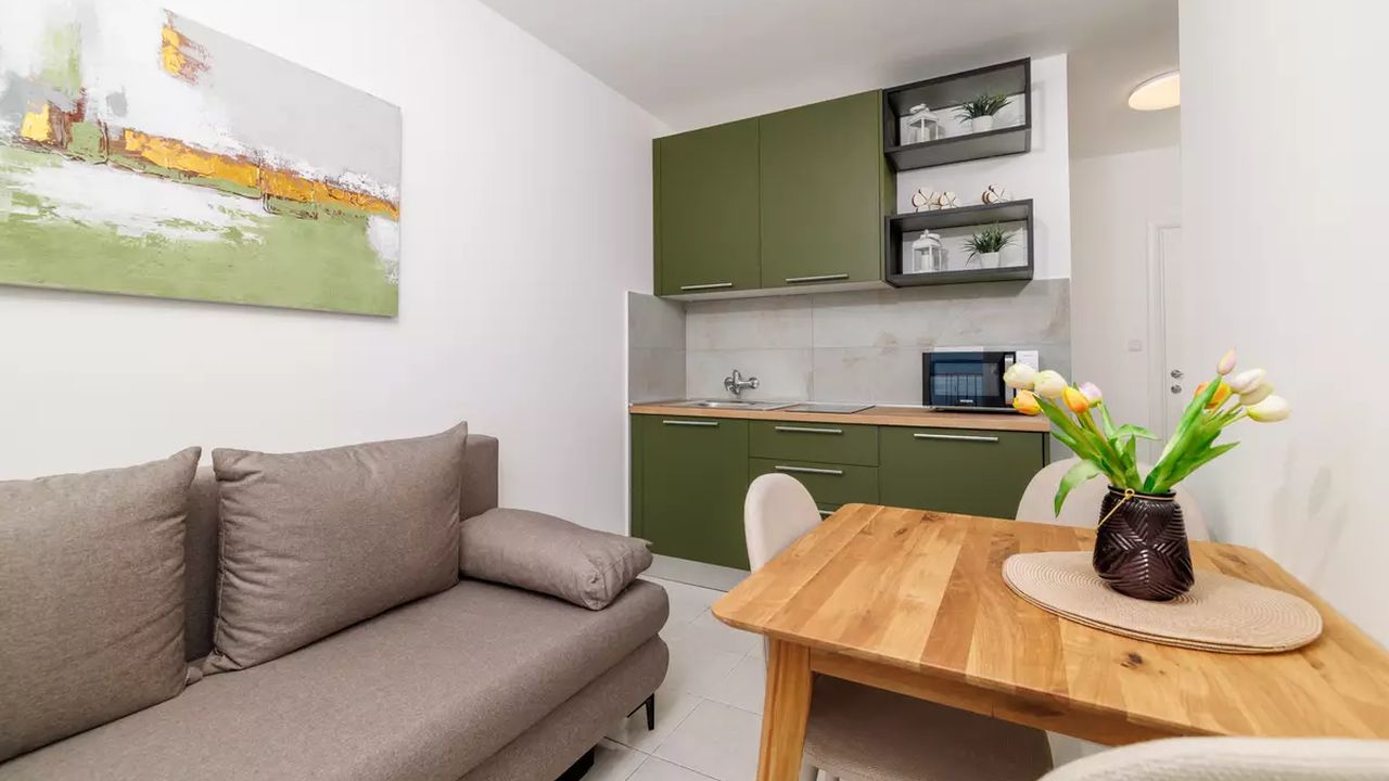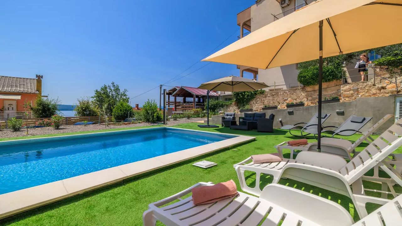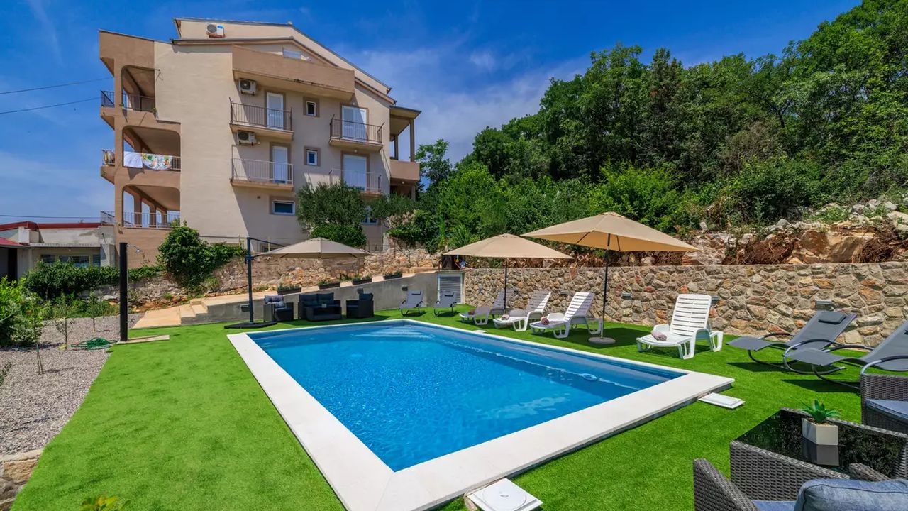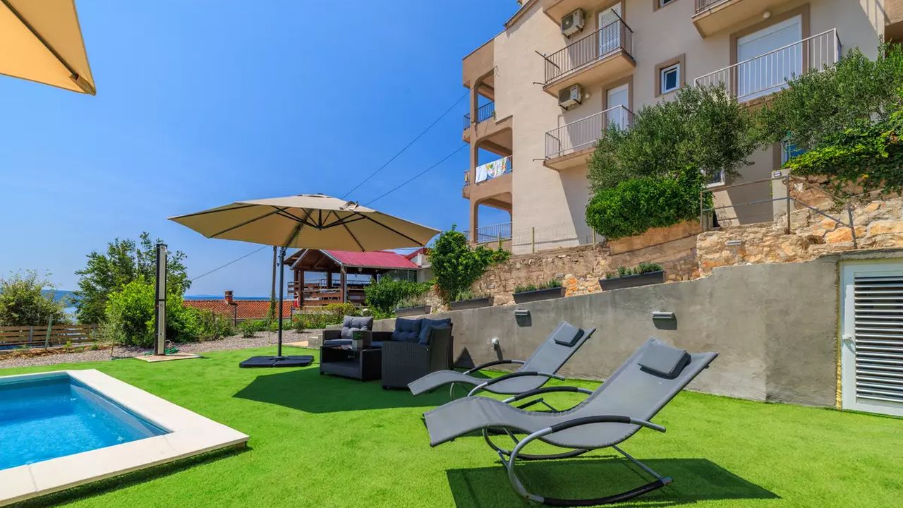 Sch and ouml;ne und moderne Apartments mit Swimmingpool, gelegen in einer ruhigen und angenehmen Umgebung, ideal f and uuml;r einen erholsamen Urlaub. Sie befinden sich in Dramalj, einem malerischen Vorort von Crikvenica, der eine perfekte Kombination aus nat and uuml;rlicher Umgebung und N and auml;he zum Meer bietet.G and auml;ste k and ouml;nnen zahlreiche Annehmlichkeiten genie and szlig;en, darunter ein gemeinschaftlicher Swimmingpool, der vom 1. Juni bis 30. September in Betrieb ist, gesicherte Parkpl and auml;tze, die M and ouml;glichkeit, Haustiere gegen eine t and auml;gliche Geb and uuml;hr von 8,00 EUR mitzubringen, eine Klimaanlage, die im Preis inbegriffen ist, und kostenloses Wi-Fi.
